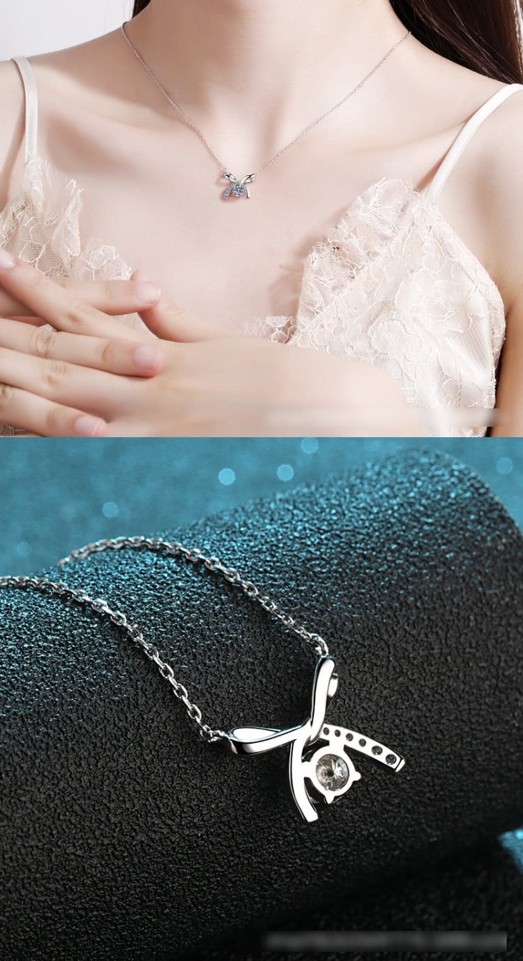 【巴黎精品】現貨+預購 莫桑鑽石項鍊飾品配件925純銀項鍊(0.5克拉蝴蝶結鈴鐺水鑽生日情人節禮物v1ae104)
