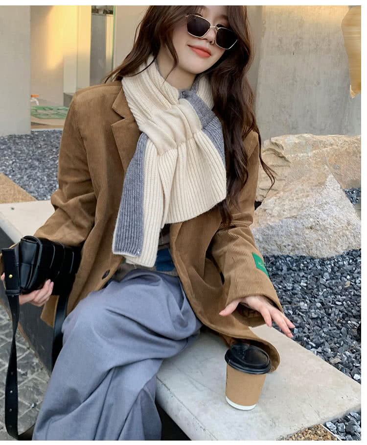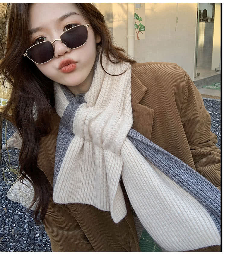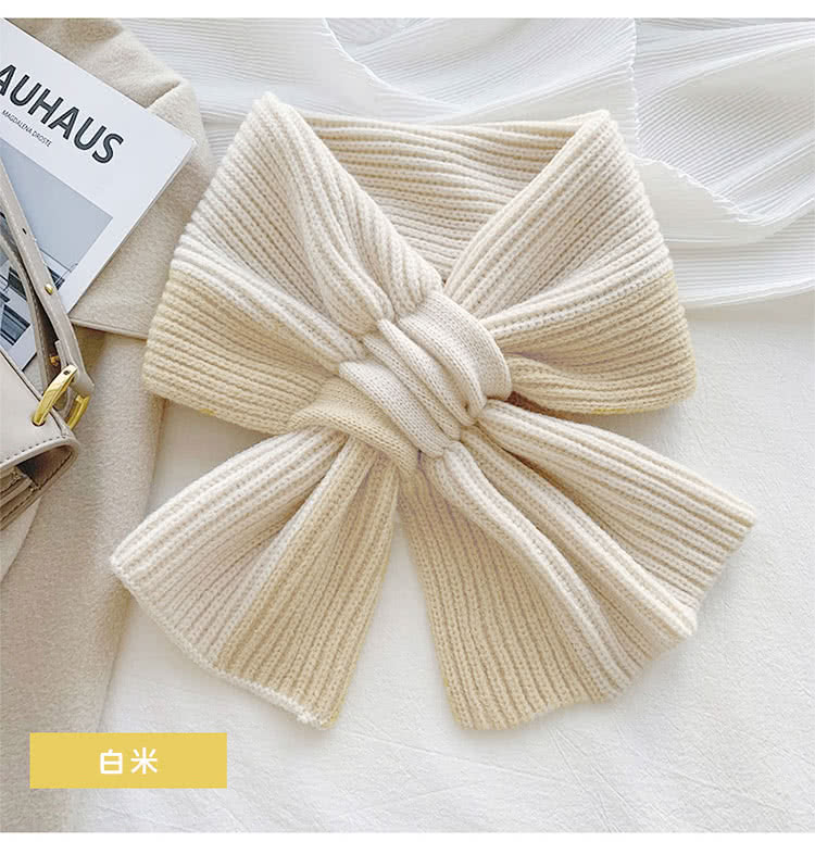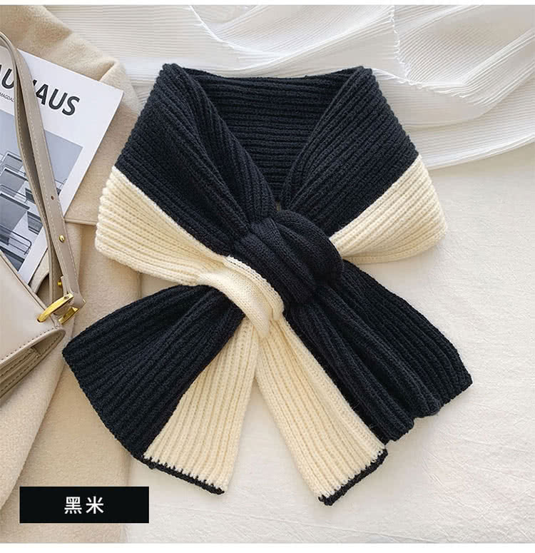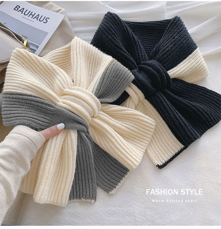 【QIDINA】韓版慵懶風圍巾百搭針織保暖拼色圍脖-A(短圍巾女 披肩圍巾 針織圍巾 脖圍)