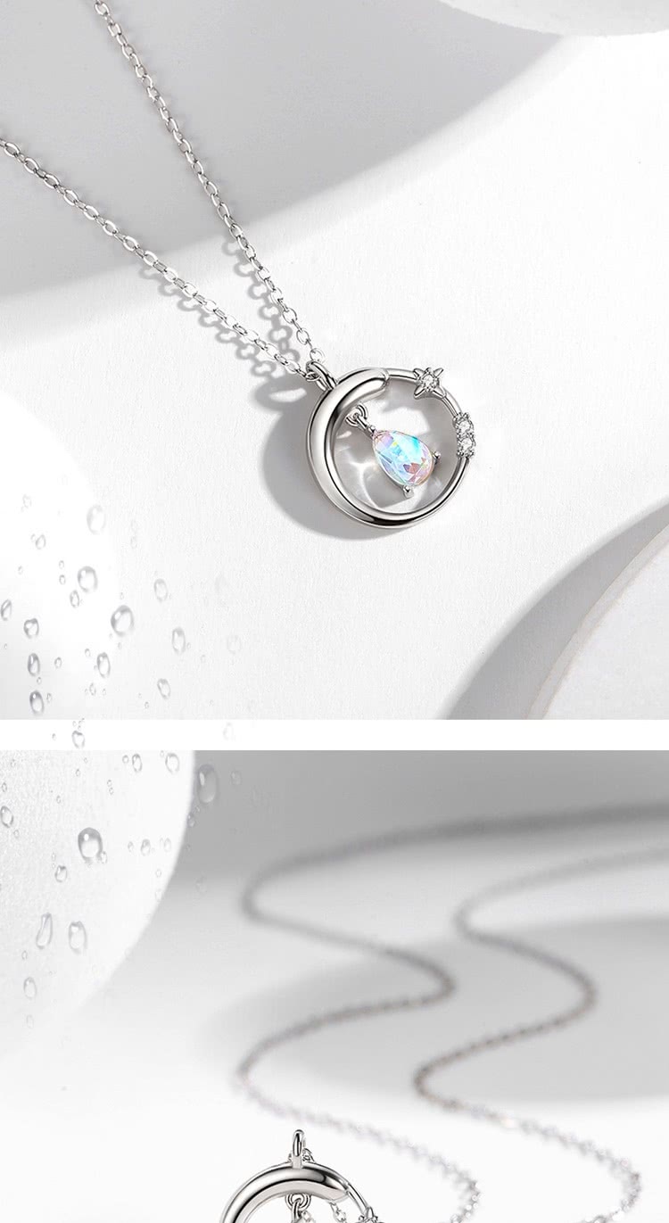 【巴黎精品】現貨+預購 925純銀項鍊月光石吊墜(魯伯特之淚鋯石生日情人節禮物女飾品v1ar69)