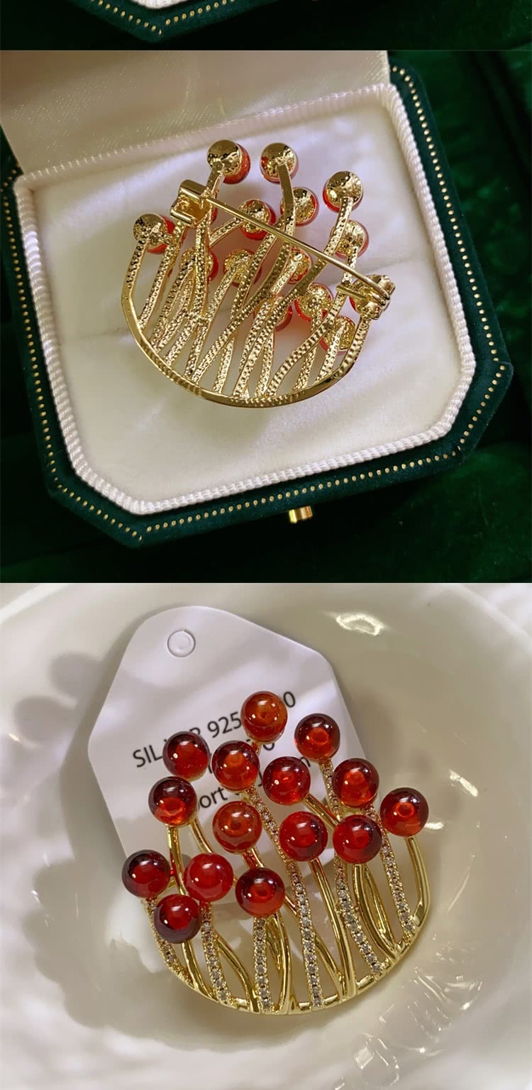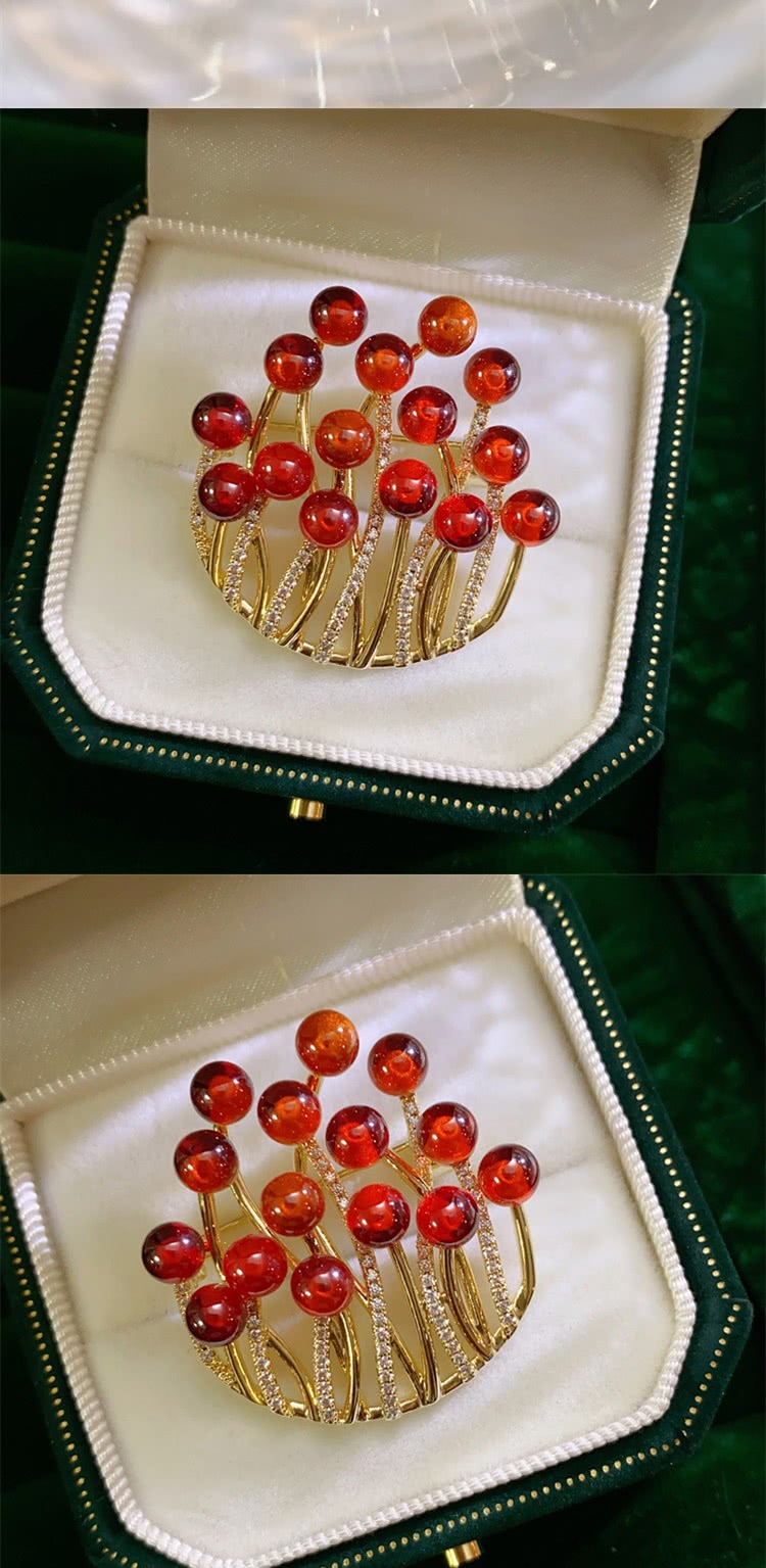 【巴黎精品】現貨+預購 瑪瑙胸針珊瑚別針(紅珊瑚滿天星微鑲鋯石生日情人節禮物女飾品a1ah39)