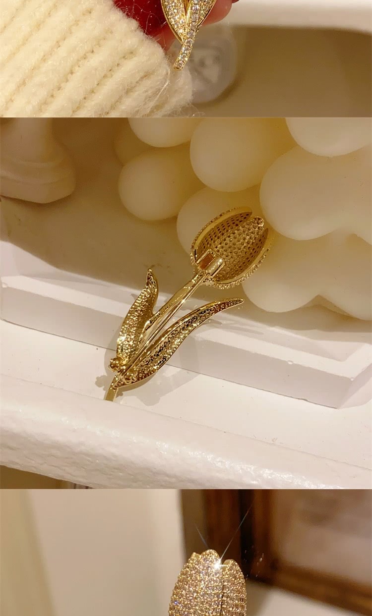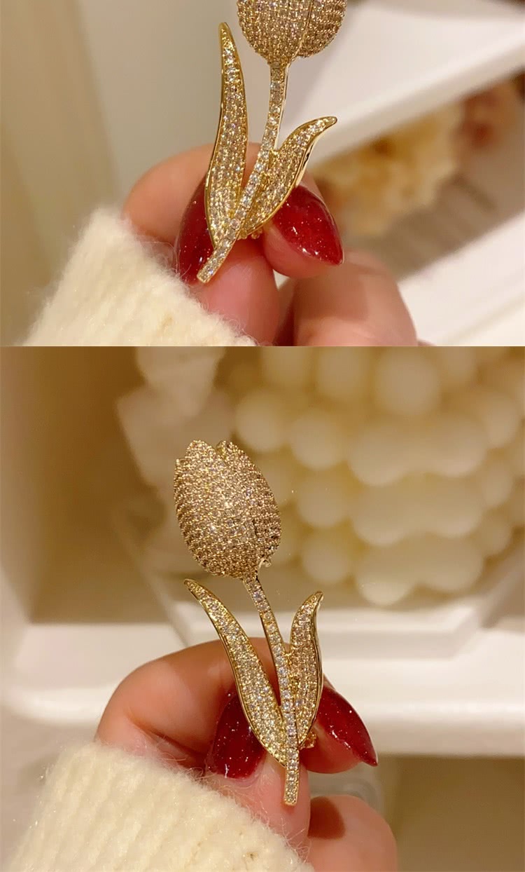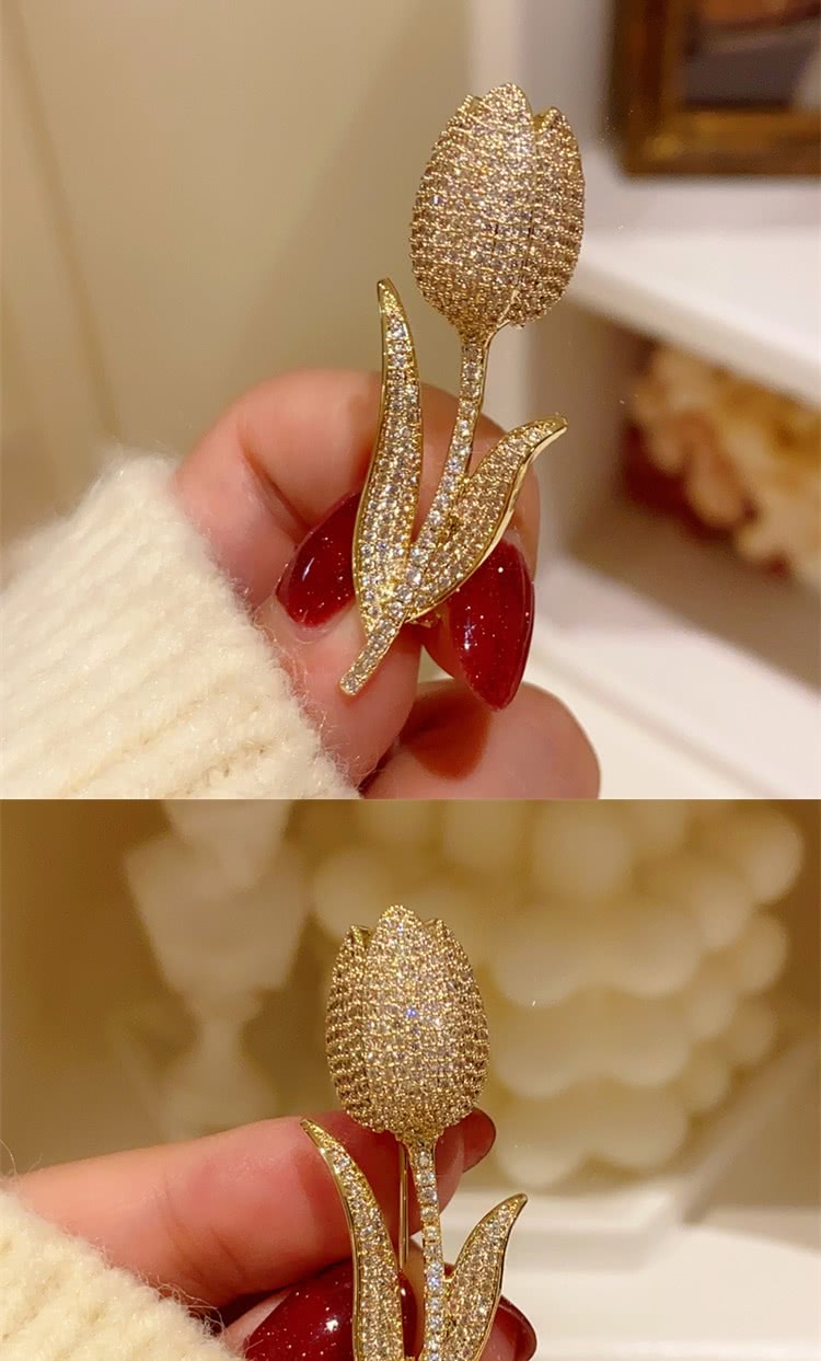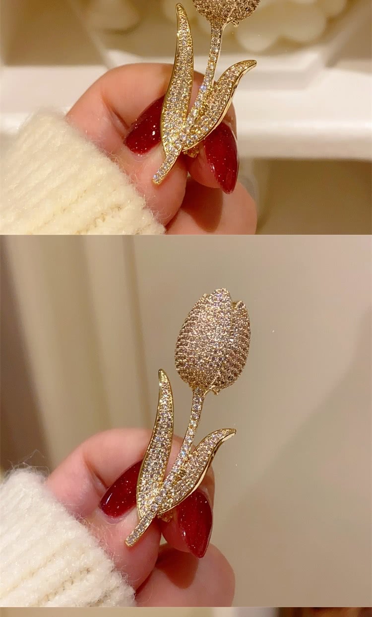 【巴黎精品】現貨+預購 鋯石胸針鬱金香別針(含苞待放滿鑽立體生日情人節禮物女飾品a1ah48)