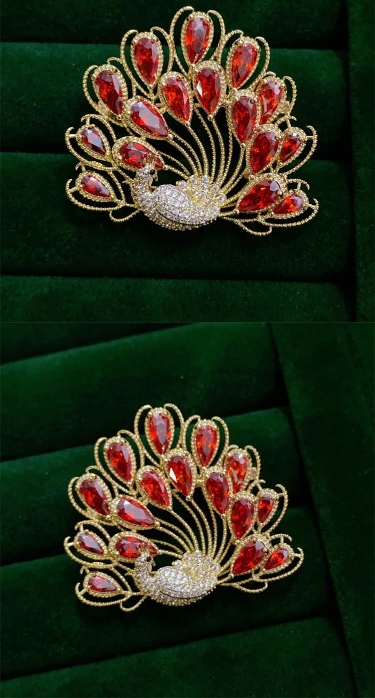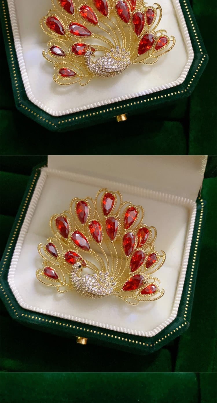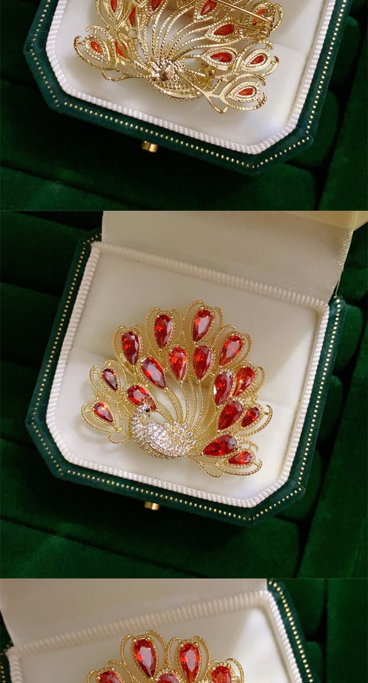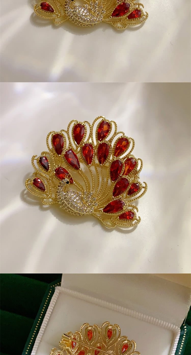 【巴黎精品】現貨+預購 鋯石胸針孔雀別針(紅色孔雀開屏滿鑽生日情人節禮物女飾品a1ah14)
