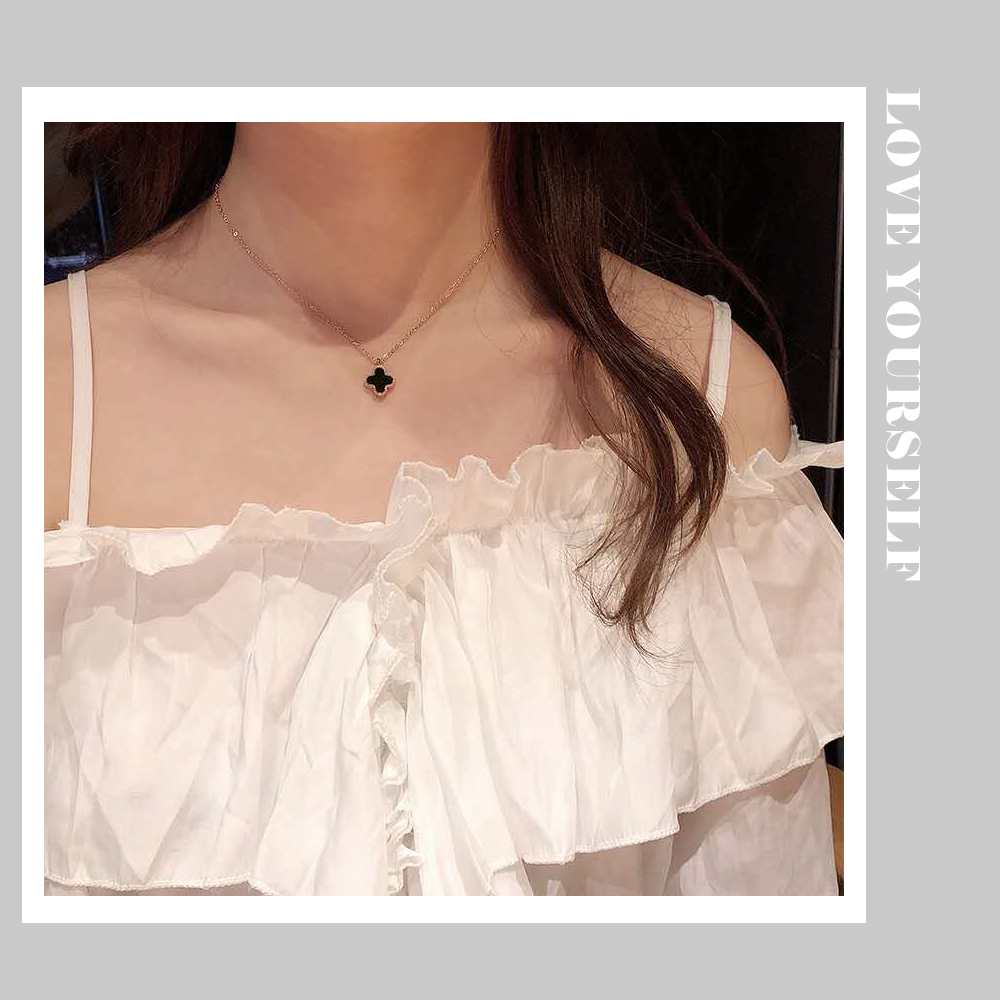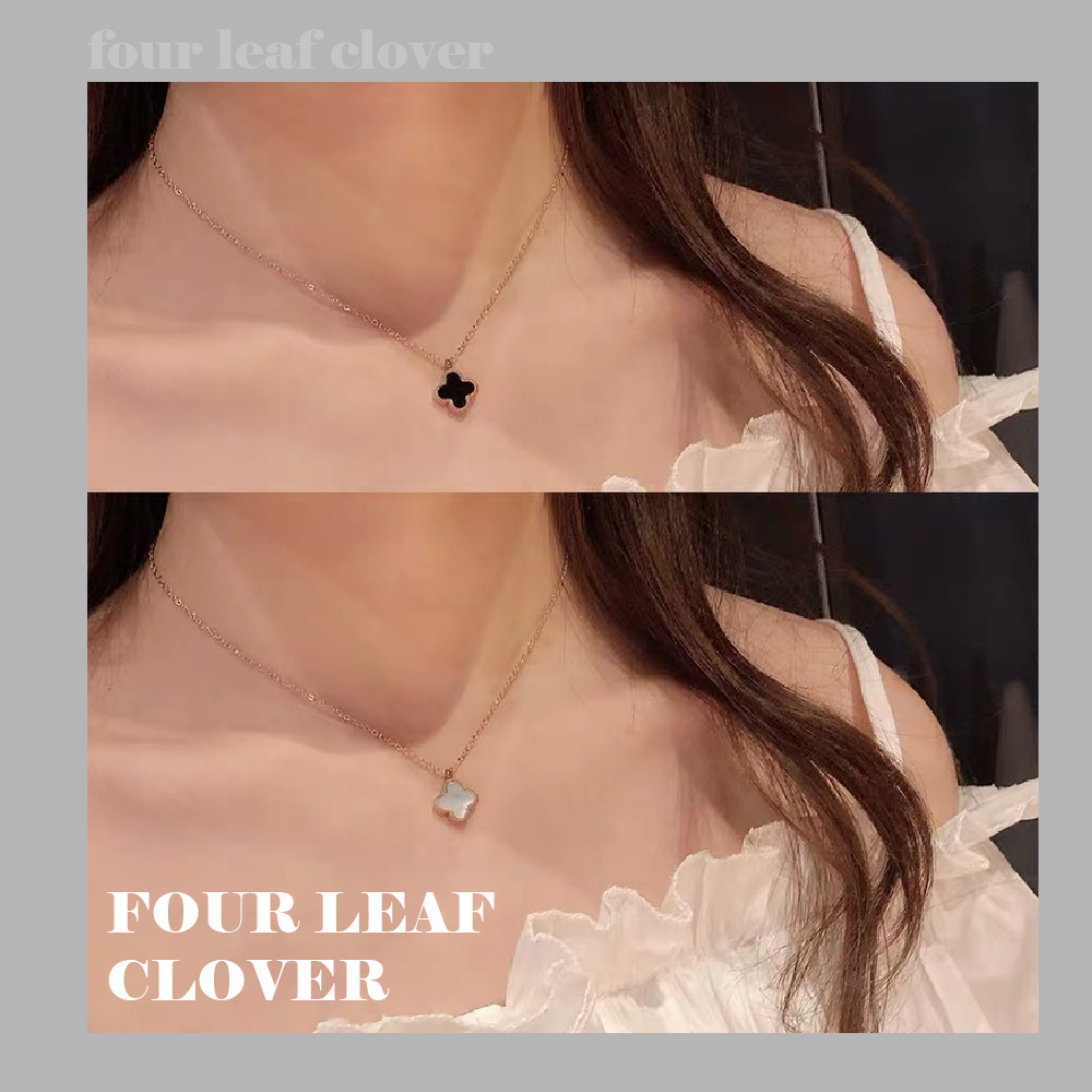 【飾品小屋】韓版四葉草雙面項鍊(雙色 鈦鋼 幸運草 女朋友 飾品 穿搭)