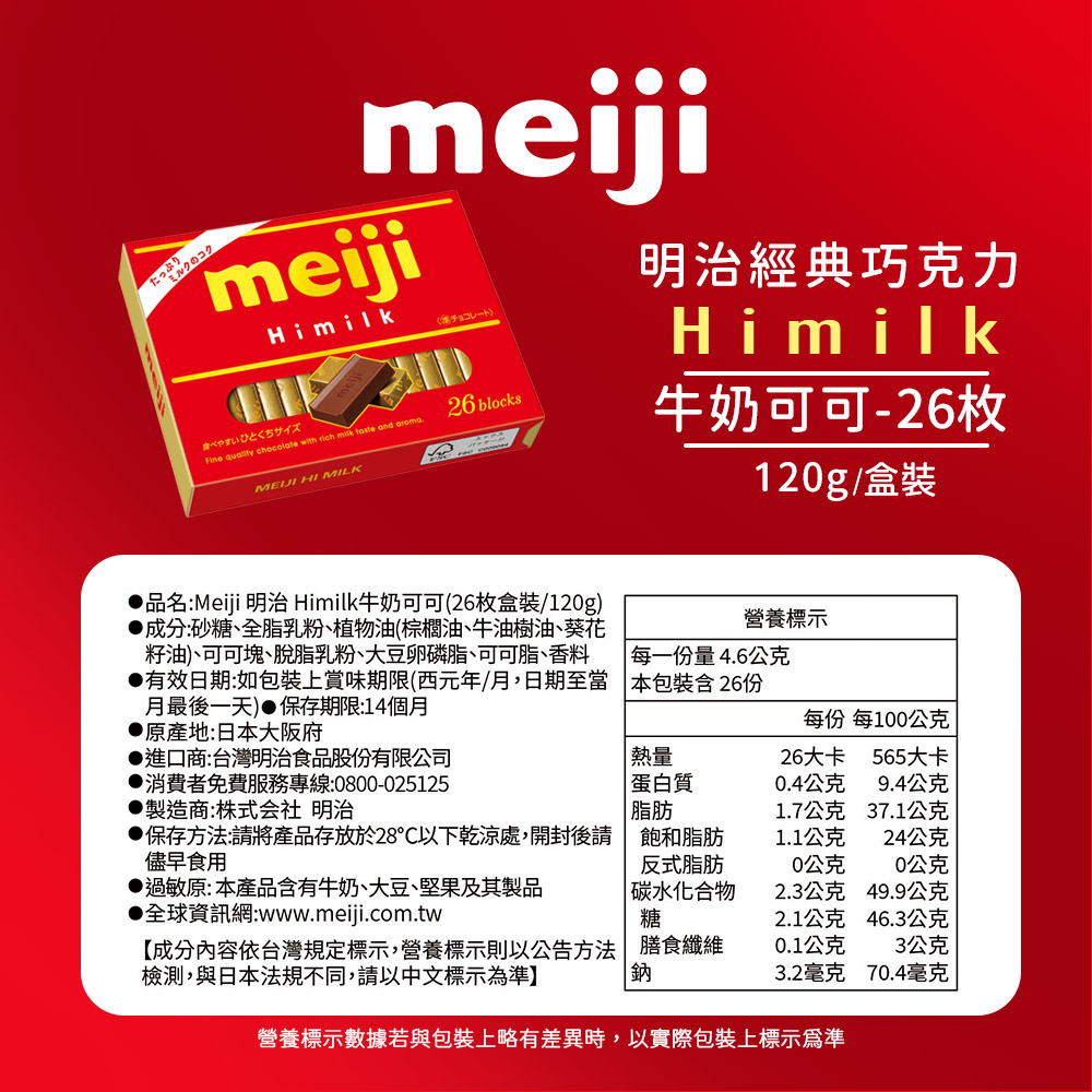 【Meiji 明治】牛奶巧克力/黑可可製品/草莓夾餡可可製品/Himilk牛奶可可/抹茶可可(26枚盒裝)