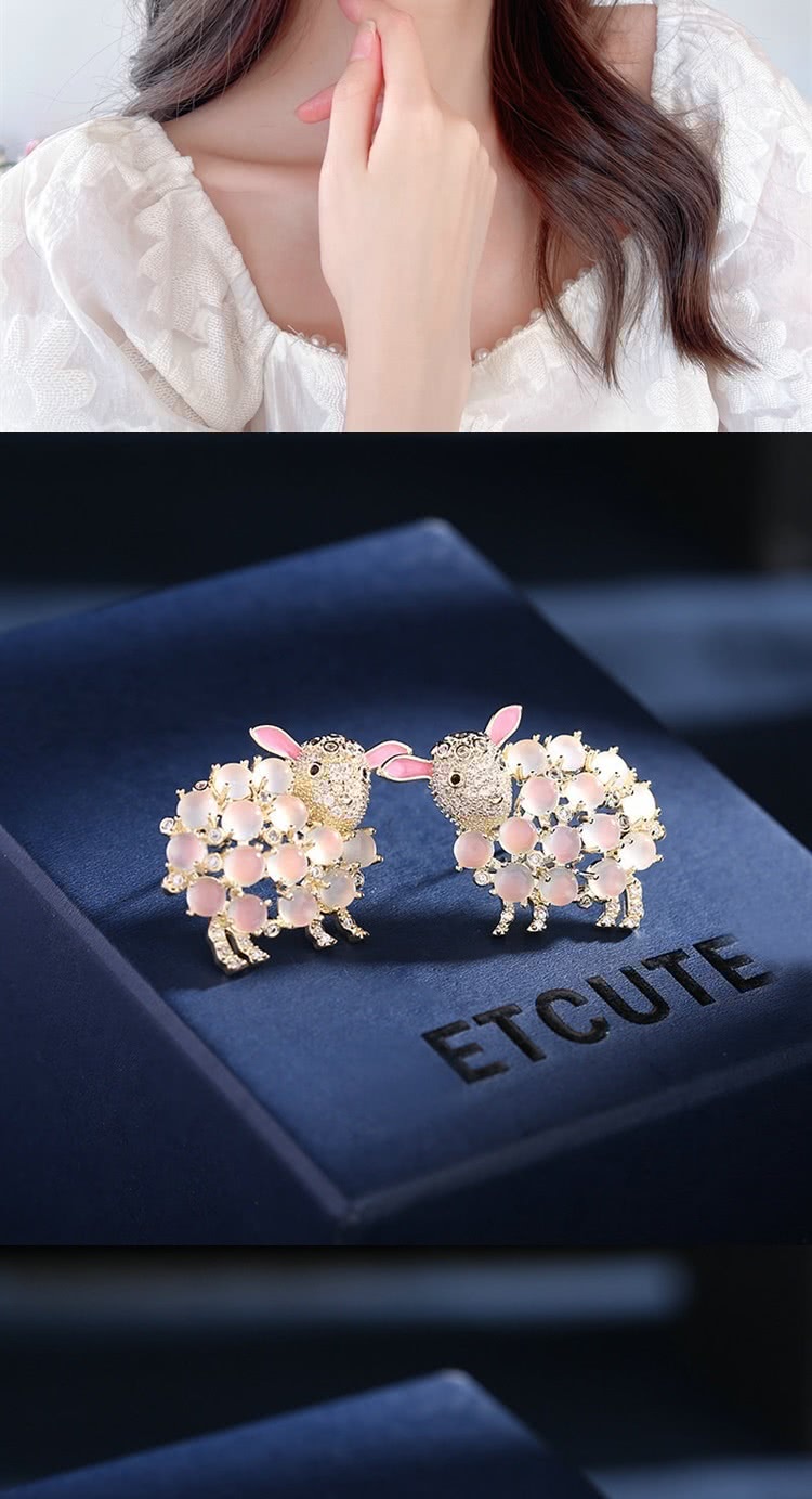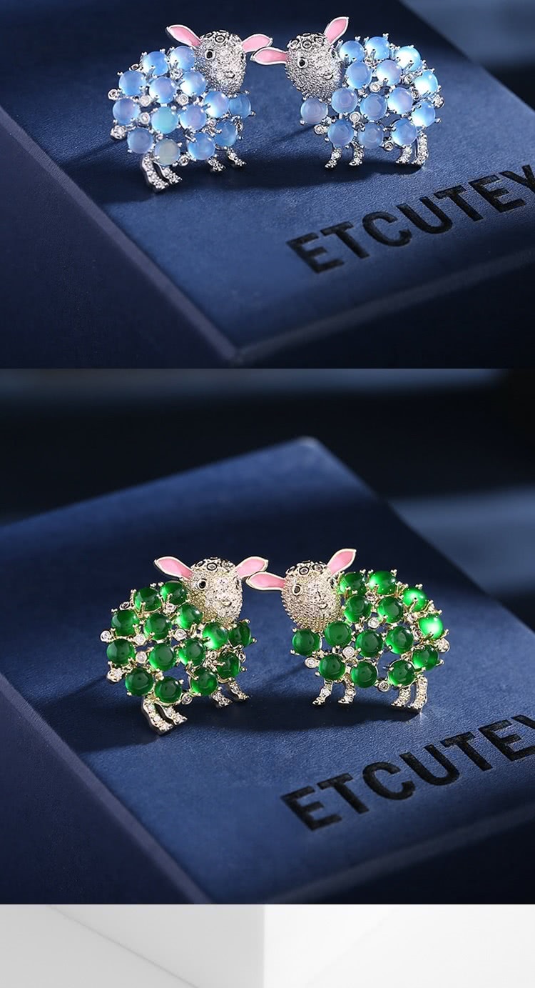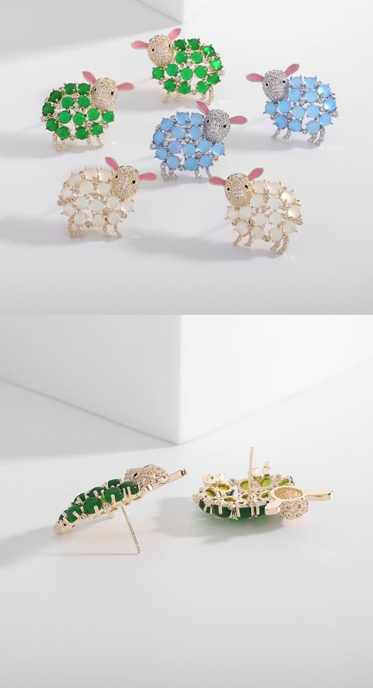 【巴黎精品】現貨+預購 鋯石耳環925純銀耳針(貓眼石綿羊鏤空生日母親節禮物女飾品3色p1bk87)