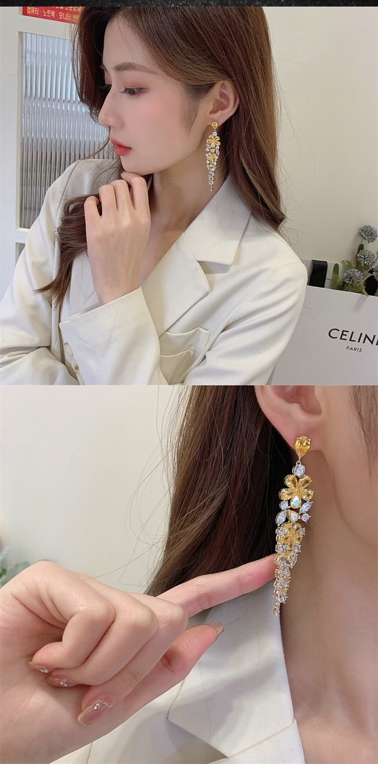 【巴黎精品】現貨+預購 鋯石耳環925純銀耳針(花朵長流蘇水滴生日母親節禮物女飾品3色p1bk48)