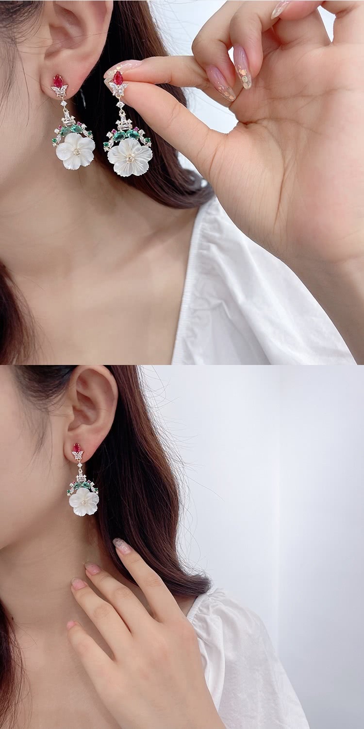 【巴黎精品】現貨+預購 鋯石耳環925純銀耳針(白色母貝花朵生日母親節禮物女飾品p1bk23)