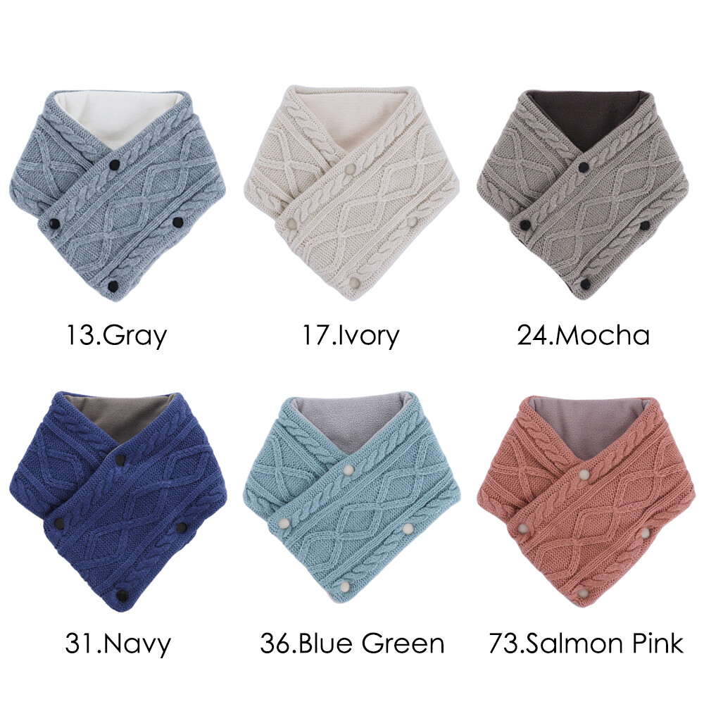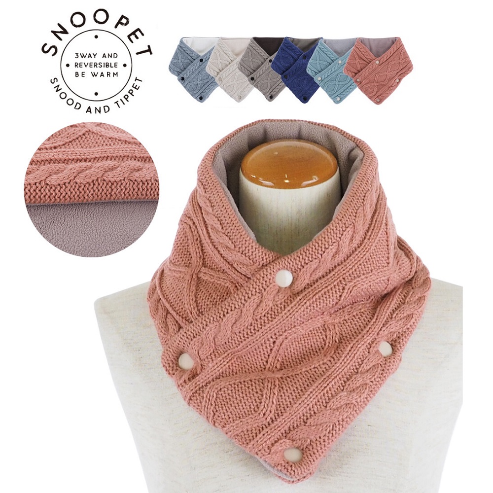 【日本SOLEIL】頂級設計親膚柔軟舒適鈕扣式脖圍羊毛觸感釦子圍巾披肩(橘色)