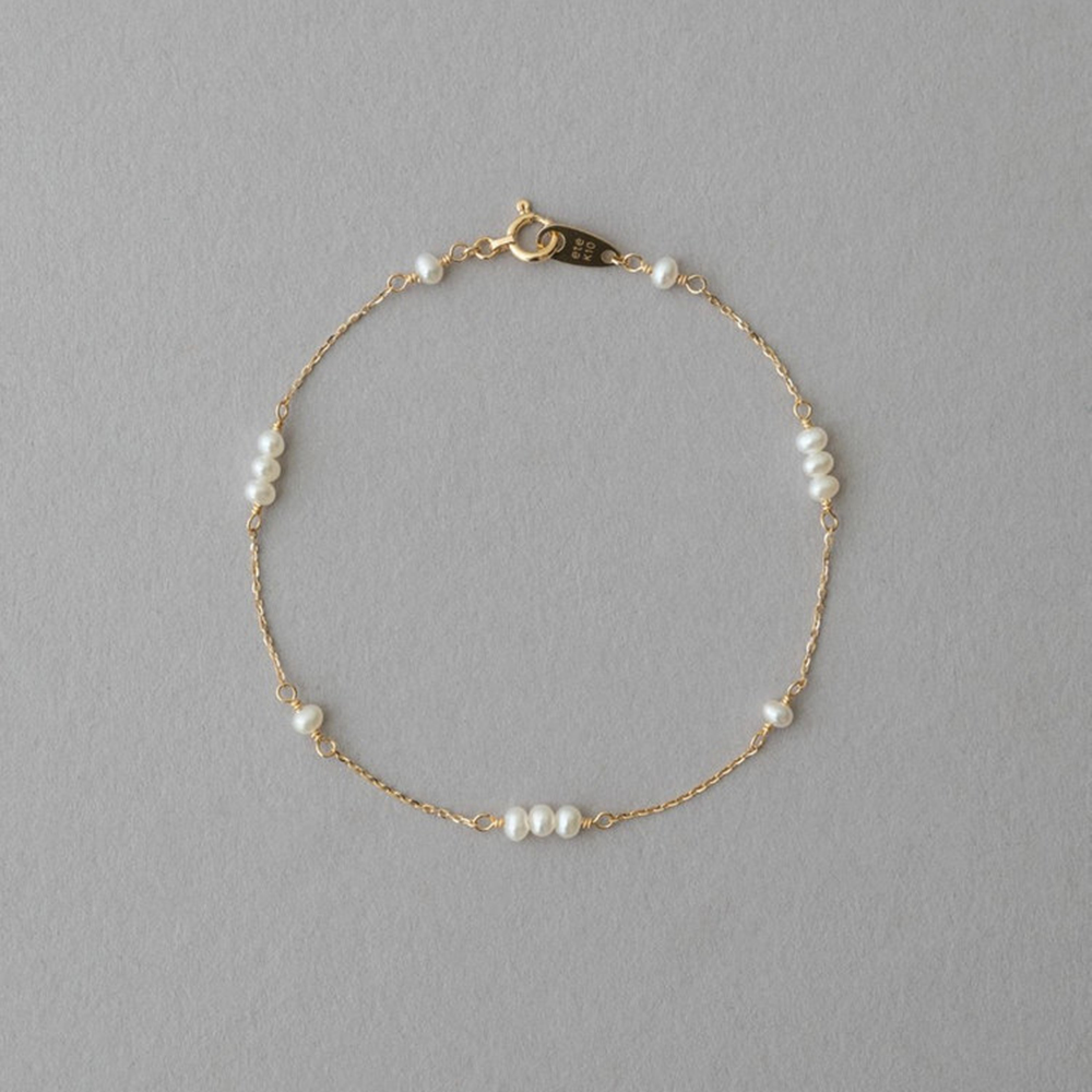 【ete】K10YG 小巧珍珠串織手鍊(金色)