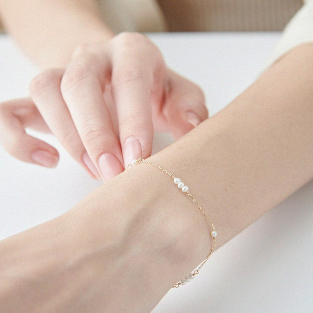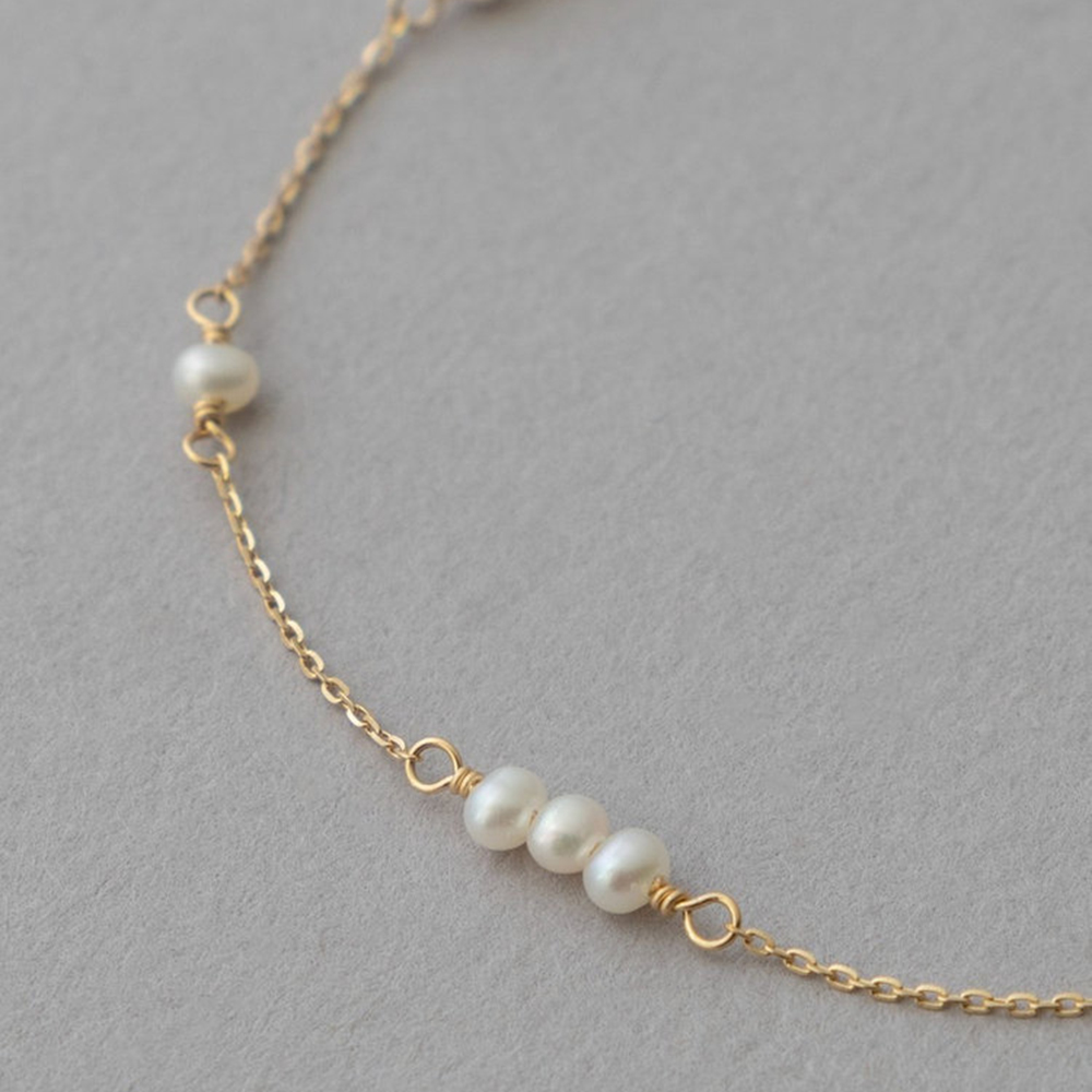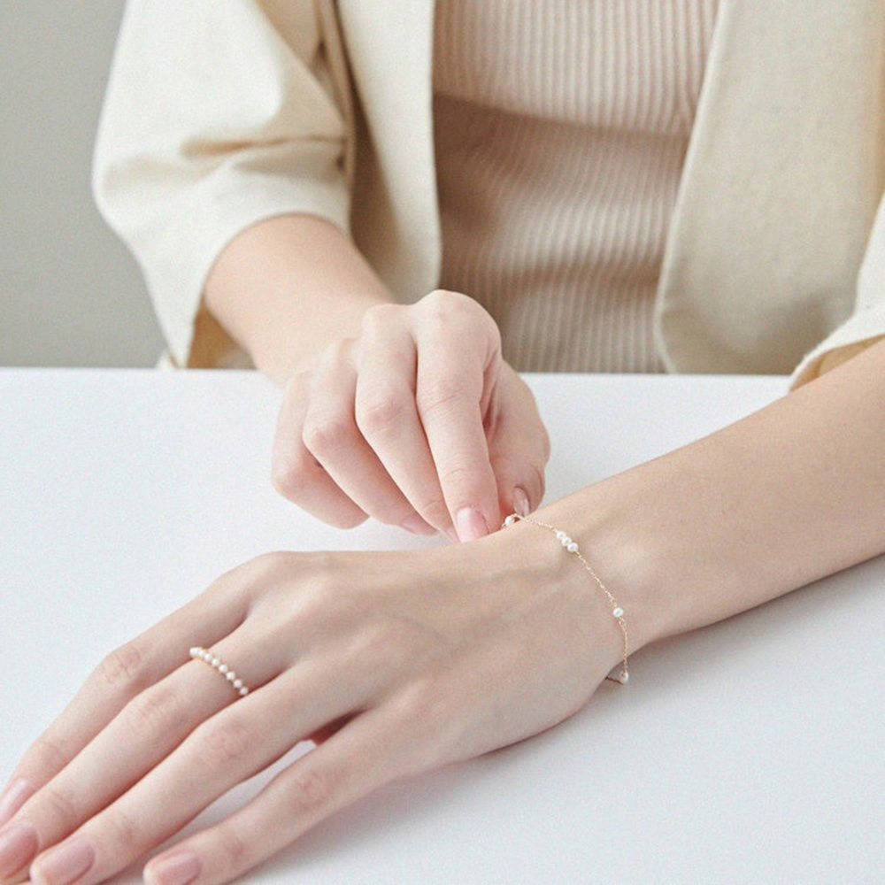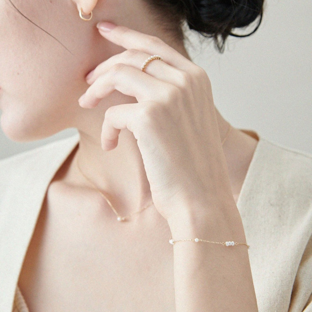精緻小巧的米粒珍珠手鍊,以串織排列設計展現優雅印象。