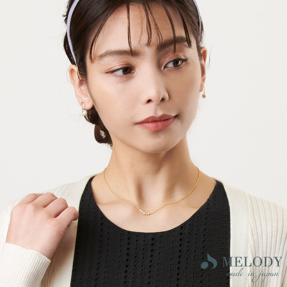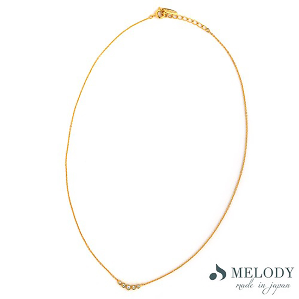 【日本MELODY ACCESSORY】日本製典雅浪漫奢華百搭日式輕珠寶淡金色U字微笑曲線微鑲鑽項鍊 附延長鏈(淡金色)