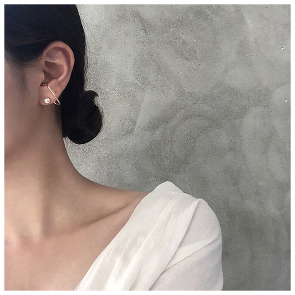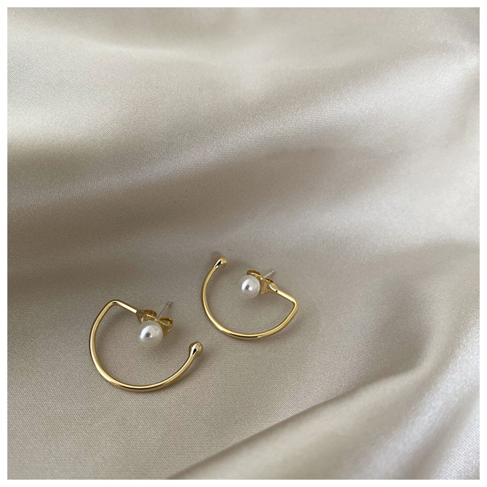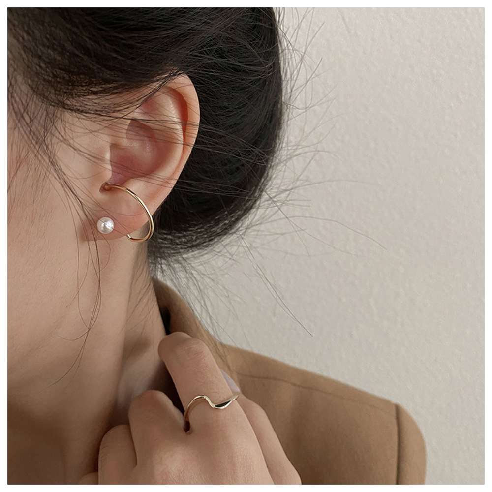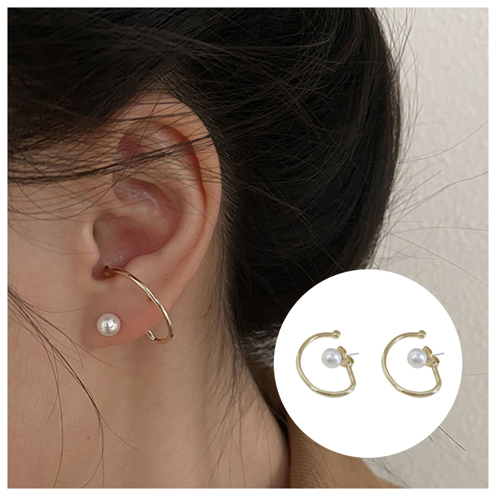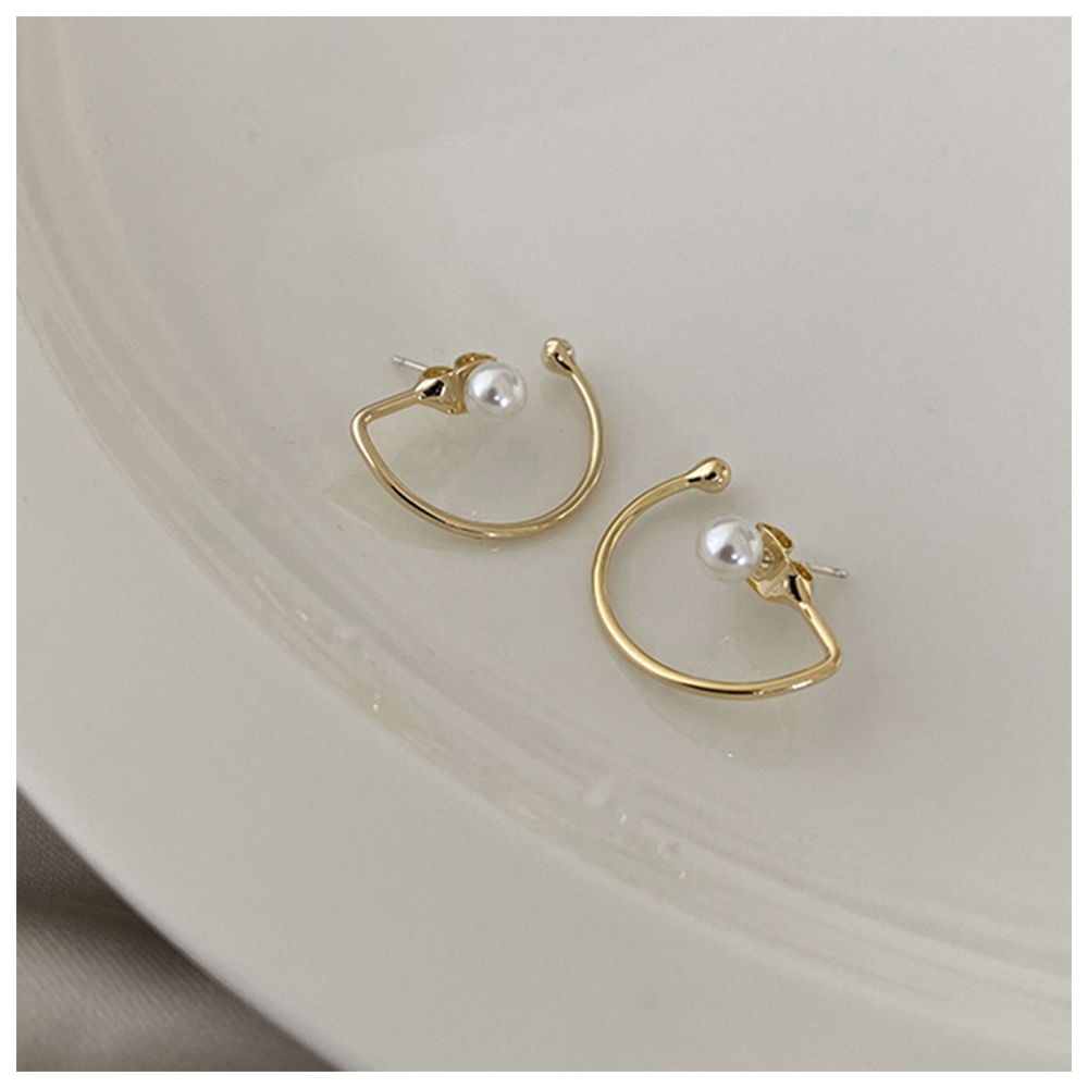 【HaNA 梨花】韓國街頭搭配小時尚.曲線珍珠金色耳環(針式耳環 珍珠耳飾 耳圈 耳釘 耳扣)