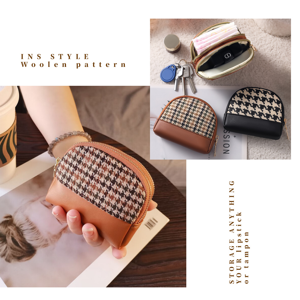 【質感卡包】雙11 ins風千鳥紋雙層零錢包(小皮包 耳機包 鑰匙包 飾品包 小物收納包 硬幣