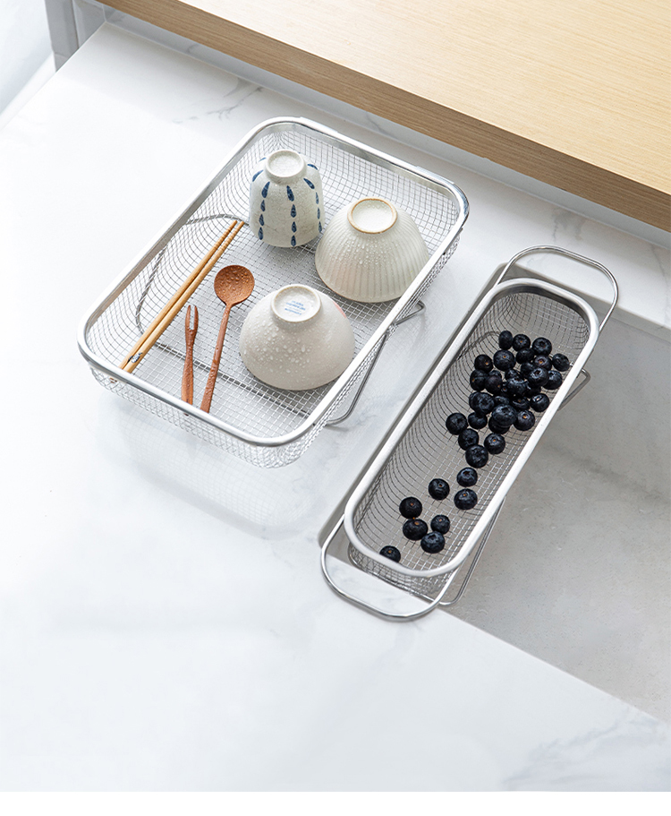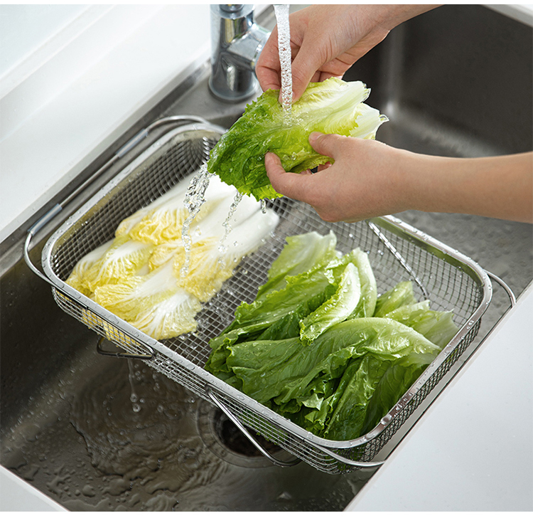 【SHIMOYAMA 霜山】304不鏽鋼水槽用伸縮式蔬果/餐具瀝水籃-大(伸縮瀝水籃/碗盤收納架/水槽置物架)