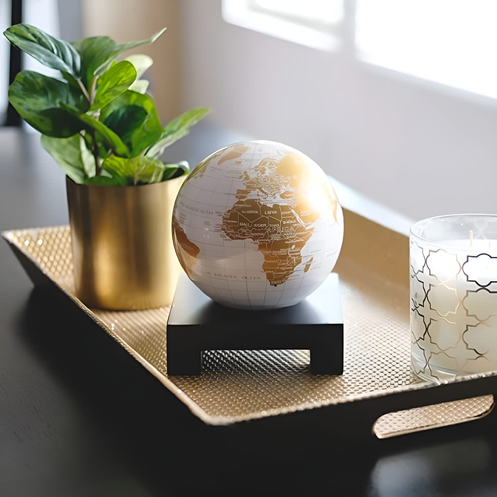 【MOVA】光能地球儀 - 奢華白金地圖White and Gold 4.5英吋(居家擺設.精緻送禮.轉運.紀念日.生日)