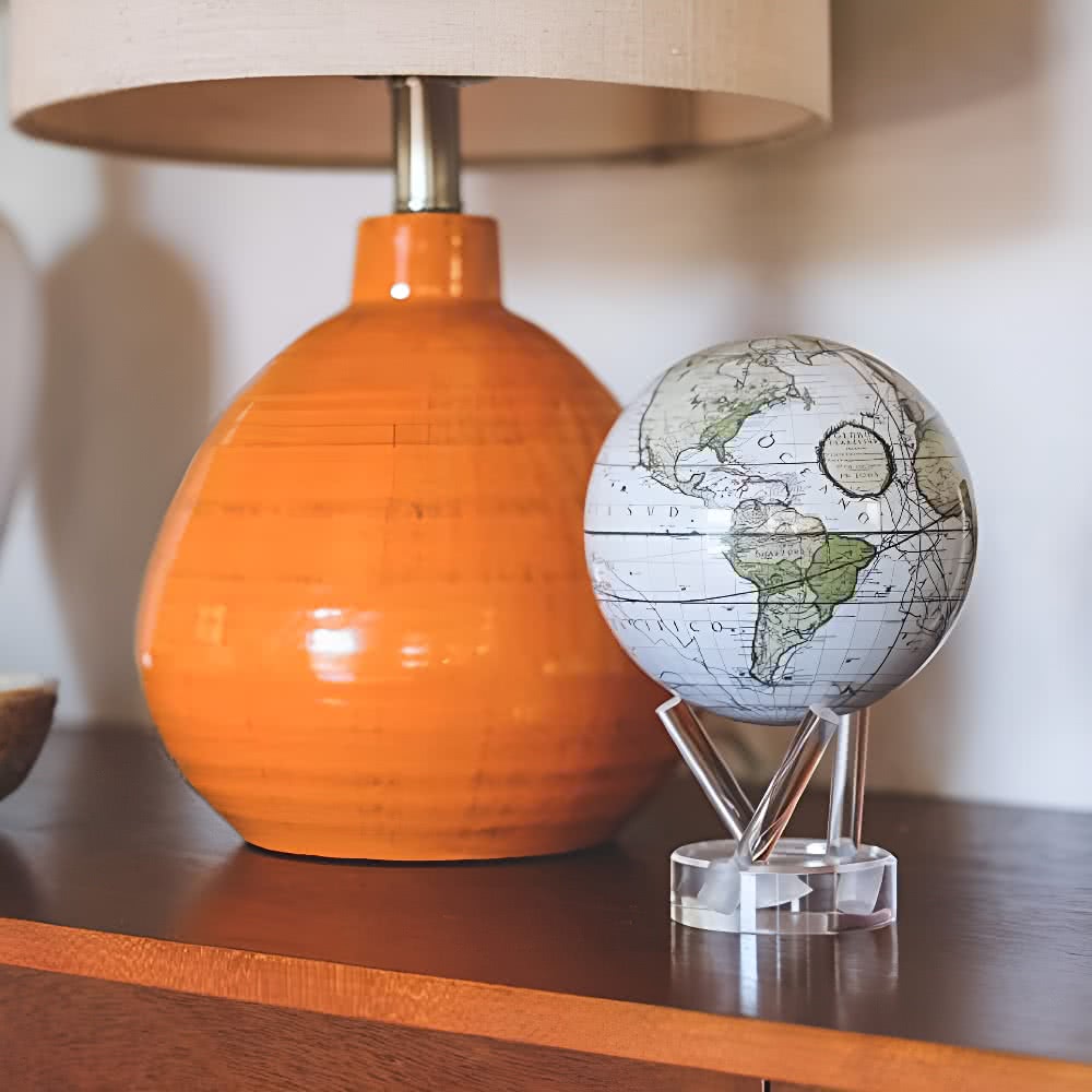 【MOVA】光能地球儀 - 白色卡西尼地圖Antique Terrestrial 4.5英吋(擺設 精緻送禮 轉運 紀念日 生日)