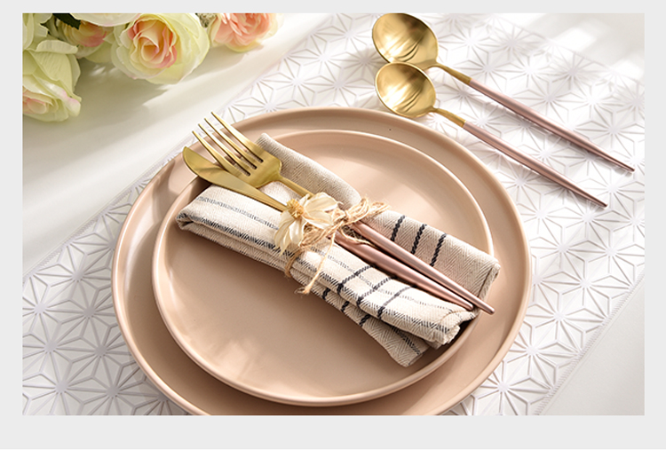 【Homely Zakka】輕奢粉金撞色不鏽鋼餐具4件組(刀叉 湯匙 西式餐具 環保餐具)
