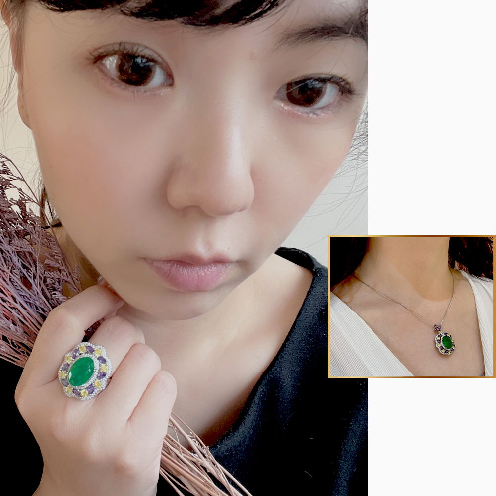 【Emmas愛馬飾】精工3A鋯石招財碧綠黃寶石墜&戒指組鏈(母親節禮物)