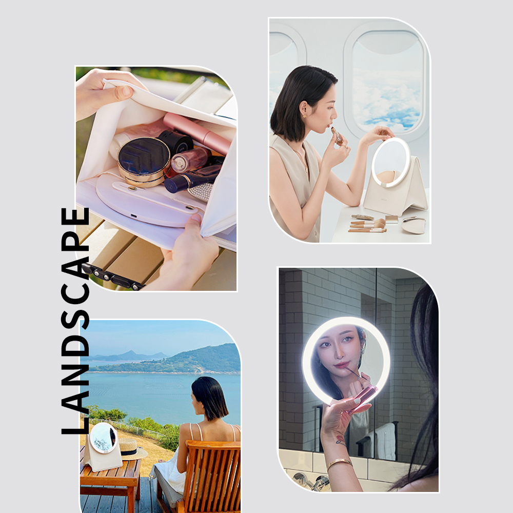 【AMIRO】覓光旅行化妝LED高清日光包包鏡(旅行化妝包/手拿包/化妝鏡/美妝鏡/隨身鏡/情人節禮物)