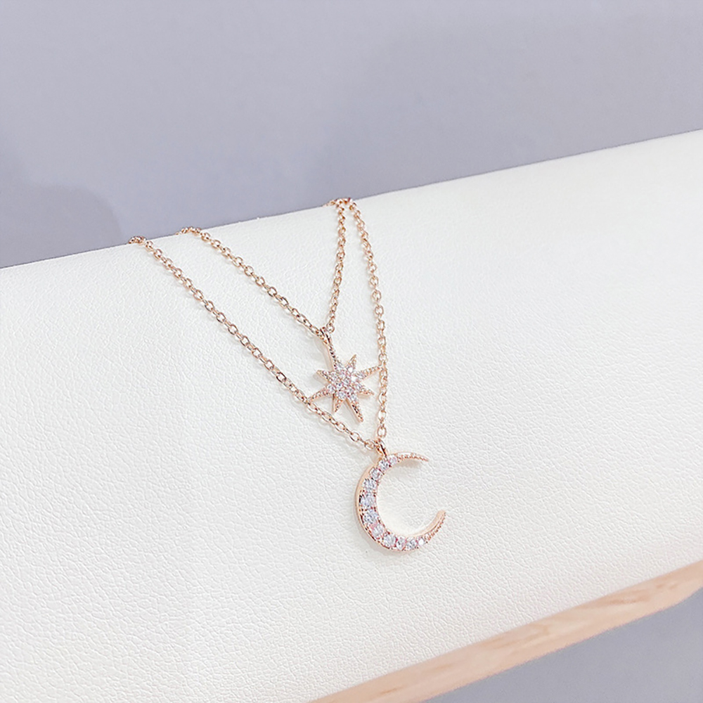 【Umi】韓式東大門浪漫星月天空奢華時尚優雅百搭玫瑰金微鑲鑽項鍊 附延長鏈(玫瑰金)