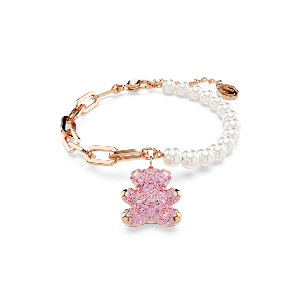【SWAROVSKI 施華洛世奇】Teddy 手鏈 水晶珍珠 泰迪熊 粉紅色 鍍玫瑰金色(情人節禮物)