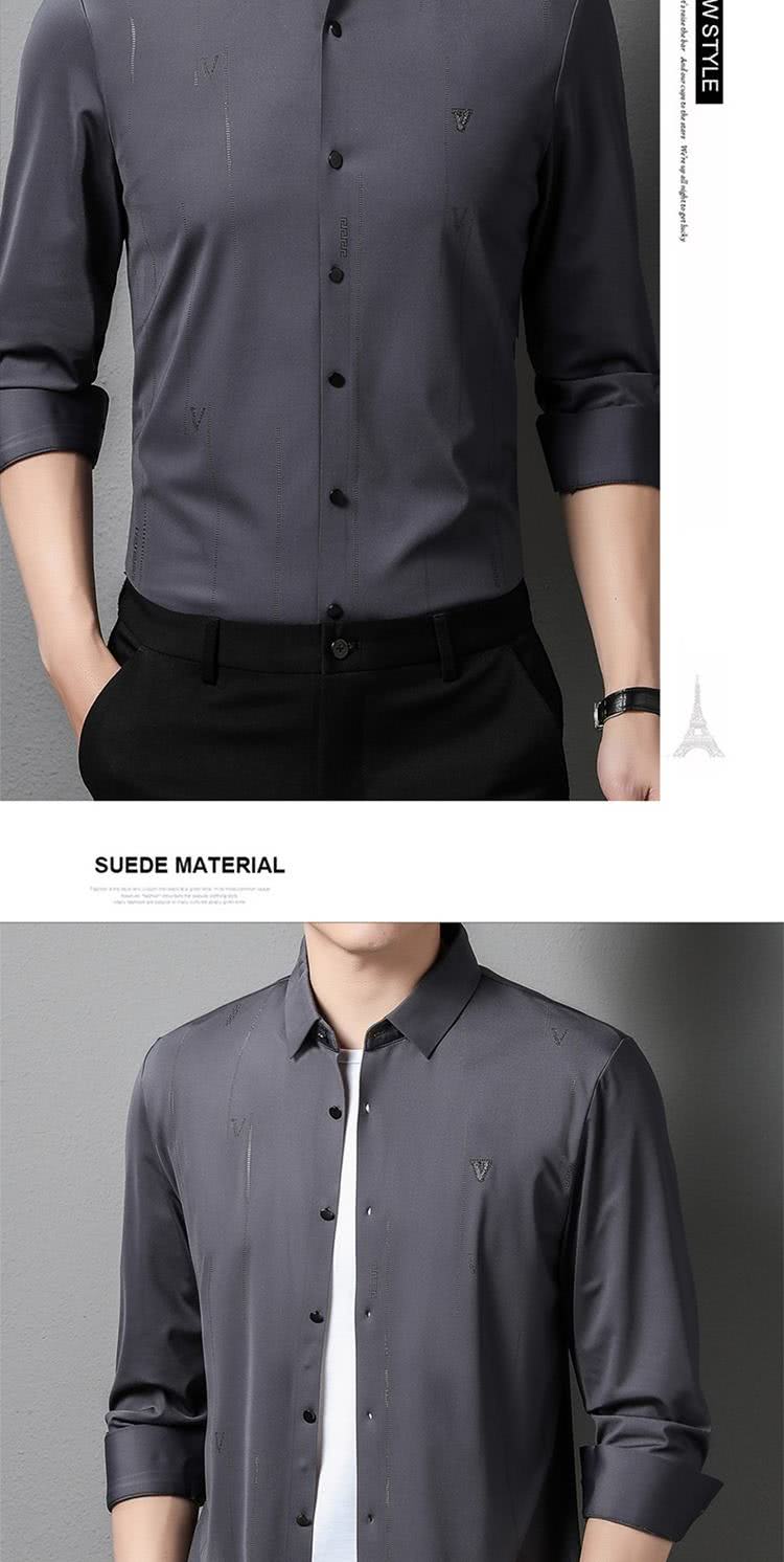 【米蘭精品】現貨+預購 襯衫長袖上衣(春秋無痕壓膠印花男裝父親節禮物4色74eq26)