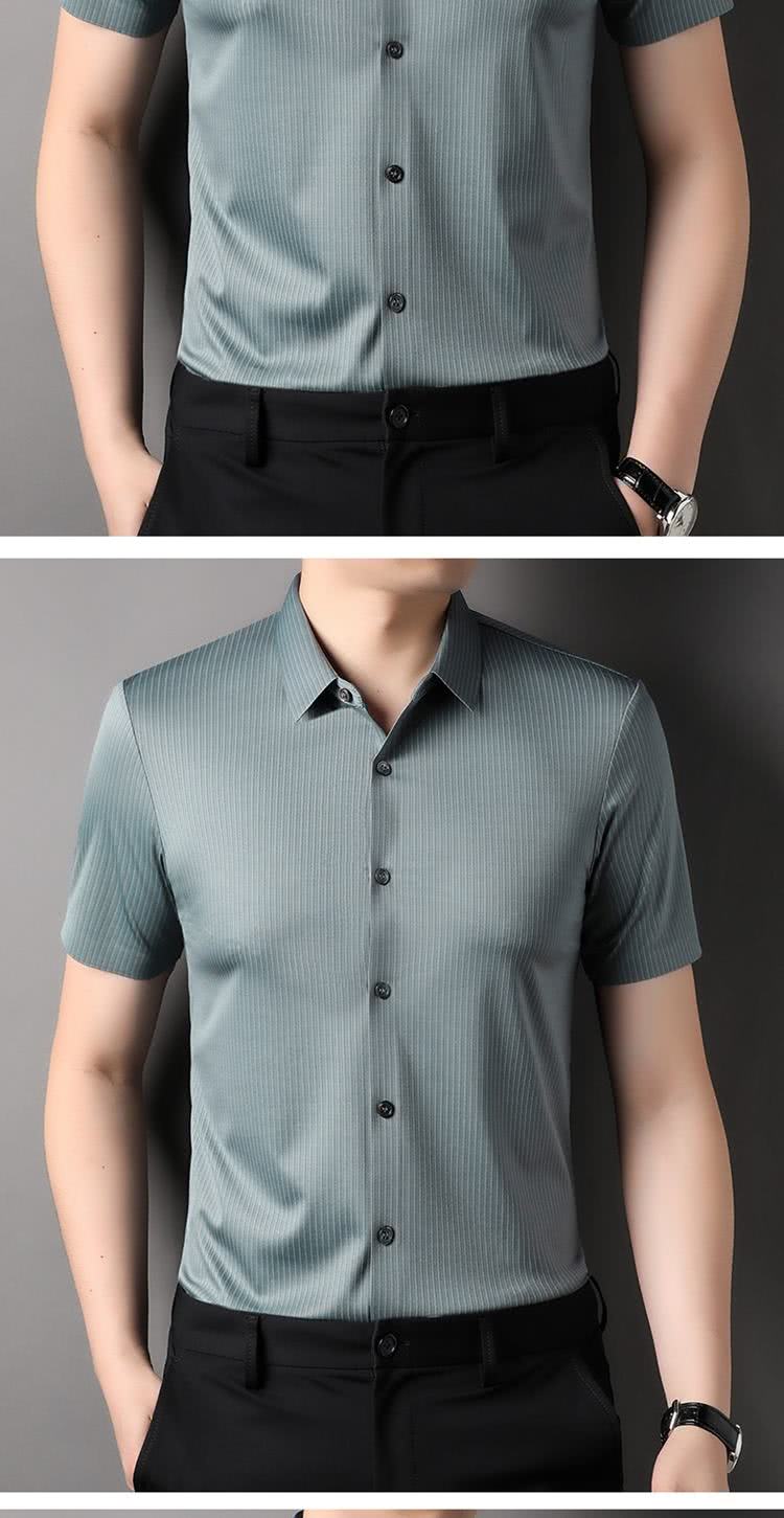 【米蘭精品】現貨+預購 襯衫短袖上衣(夏季條紋商務薄款男裝父親節禮物3色74eq2)