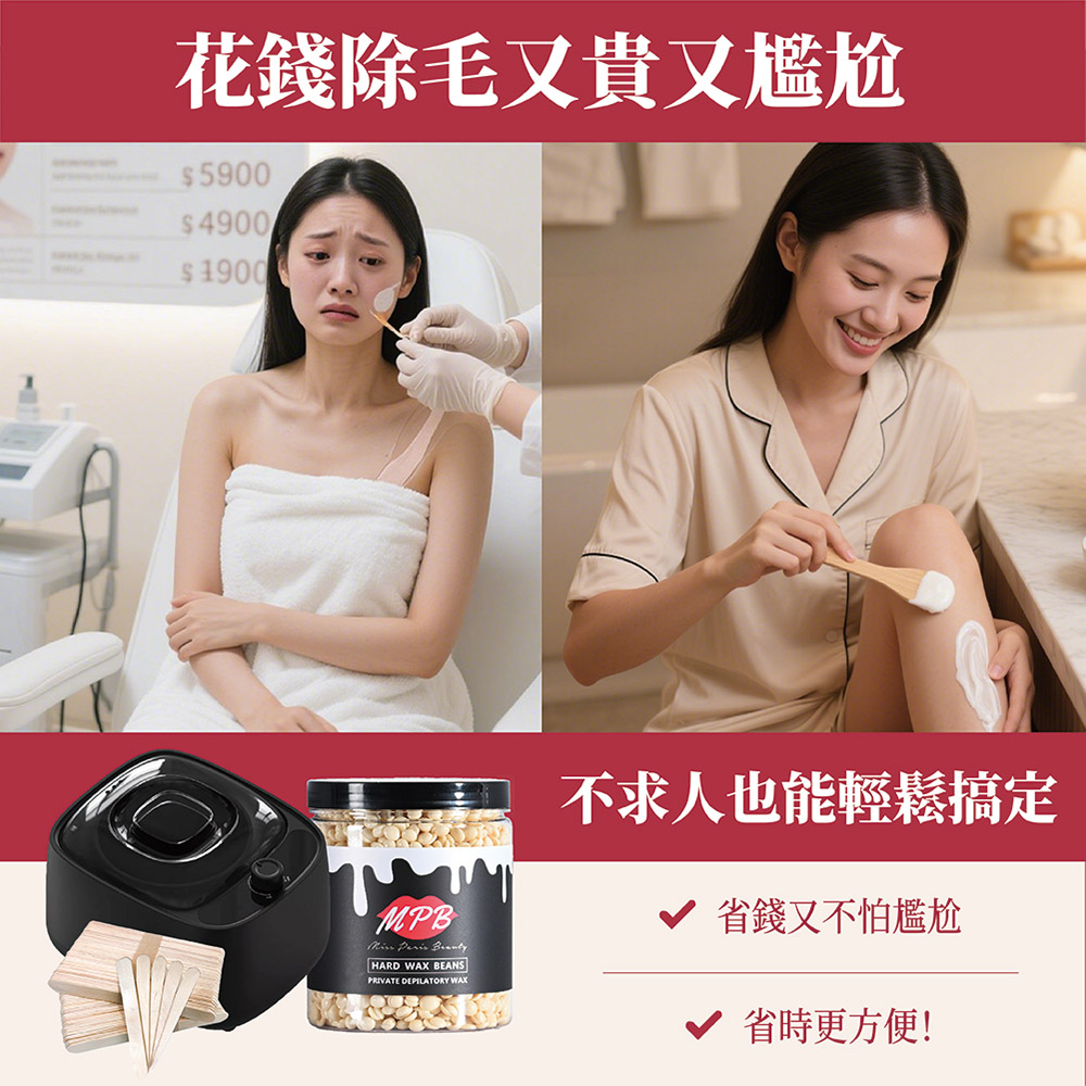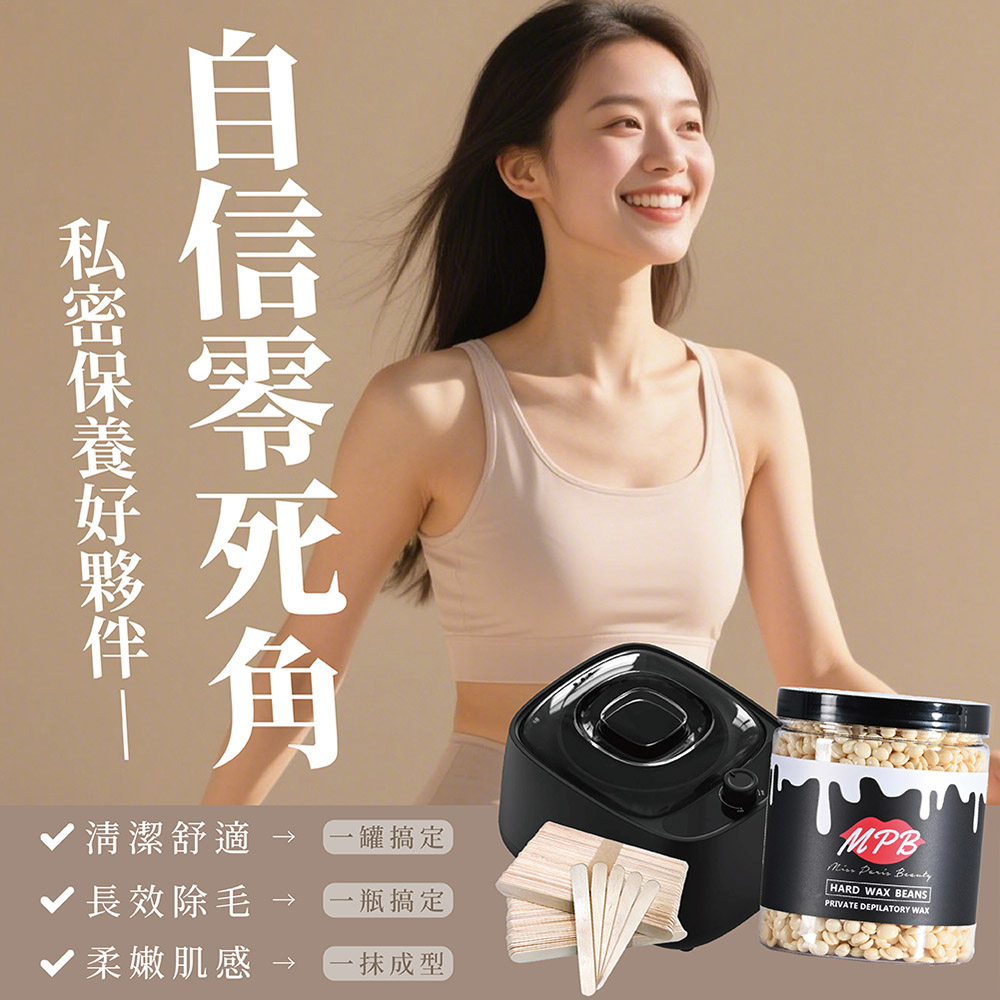 【MPB 巴黎小姐】時尚熱蠟套組 太空黑+白柚(蜜蠟 鬍鬚 蠟豆 電動刀儀 脫毛膏 比基尼 母親節禮物)