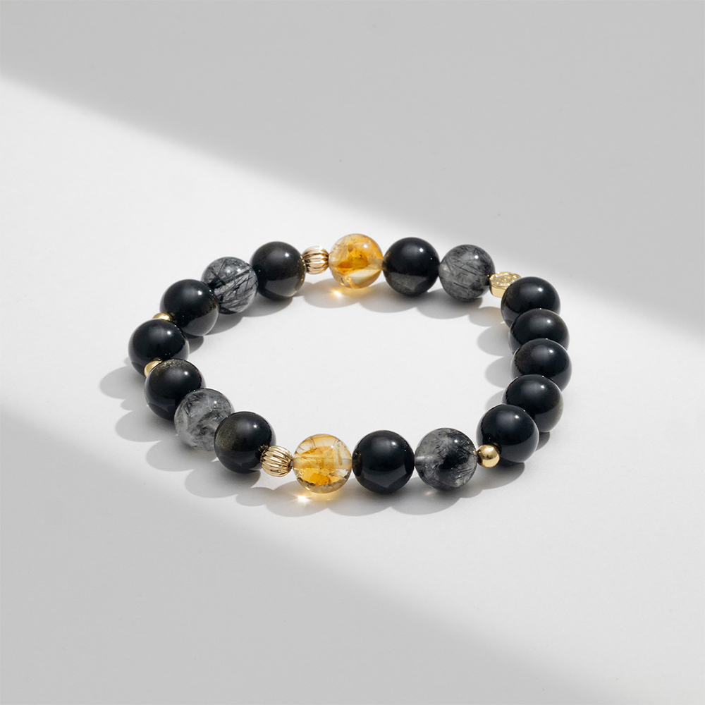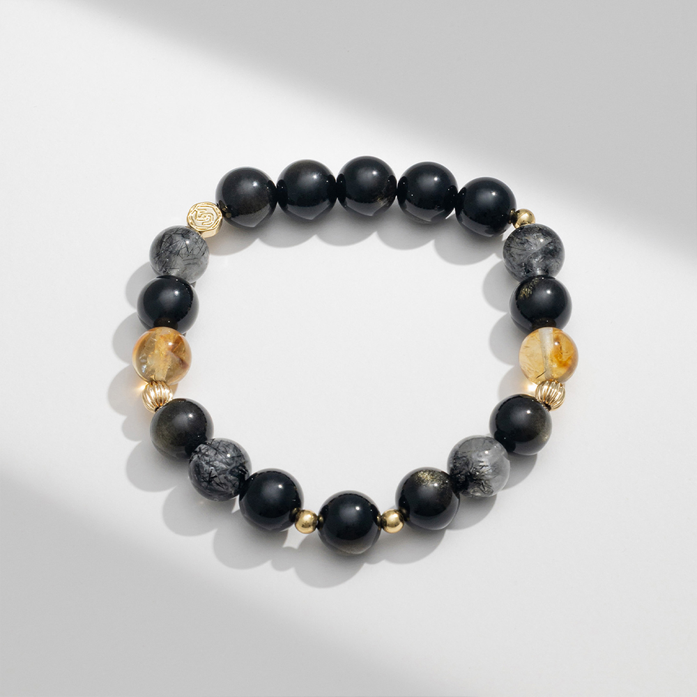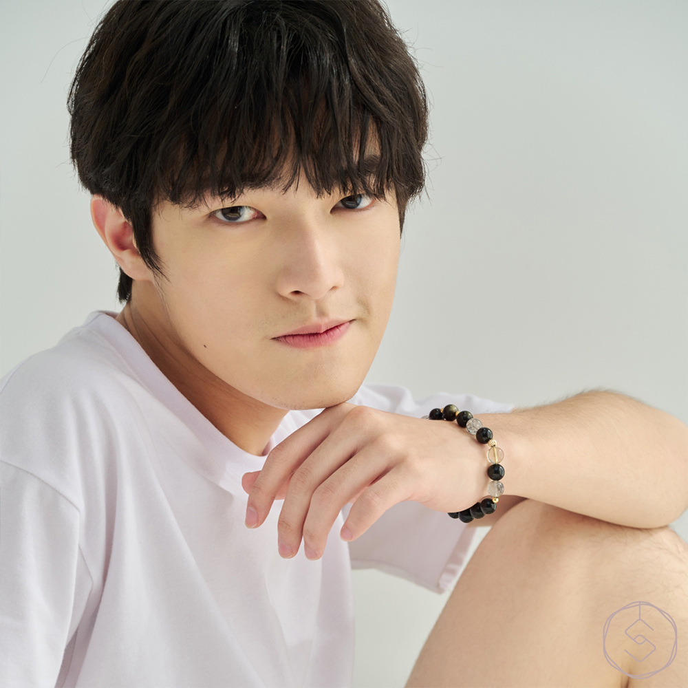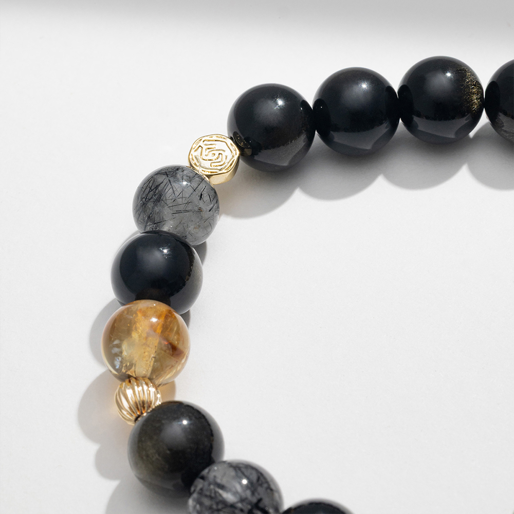 【SPANCONNY 飾品控】夜闌 l 金曜石 黑髮晶 黃塔晶 l 男款水晶手鍊(招財+防小人)