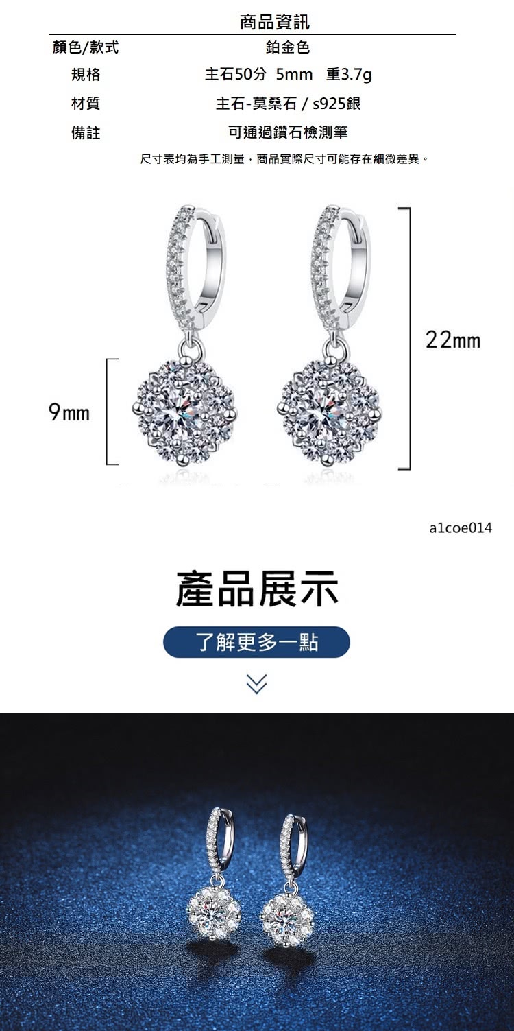 【巴黎精品】現貨+預購 莫桑鑽石耳環925純銀耳環耳針銀飾(0.5克拉女飾品生日情人節禮物a1co35)