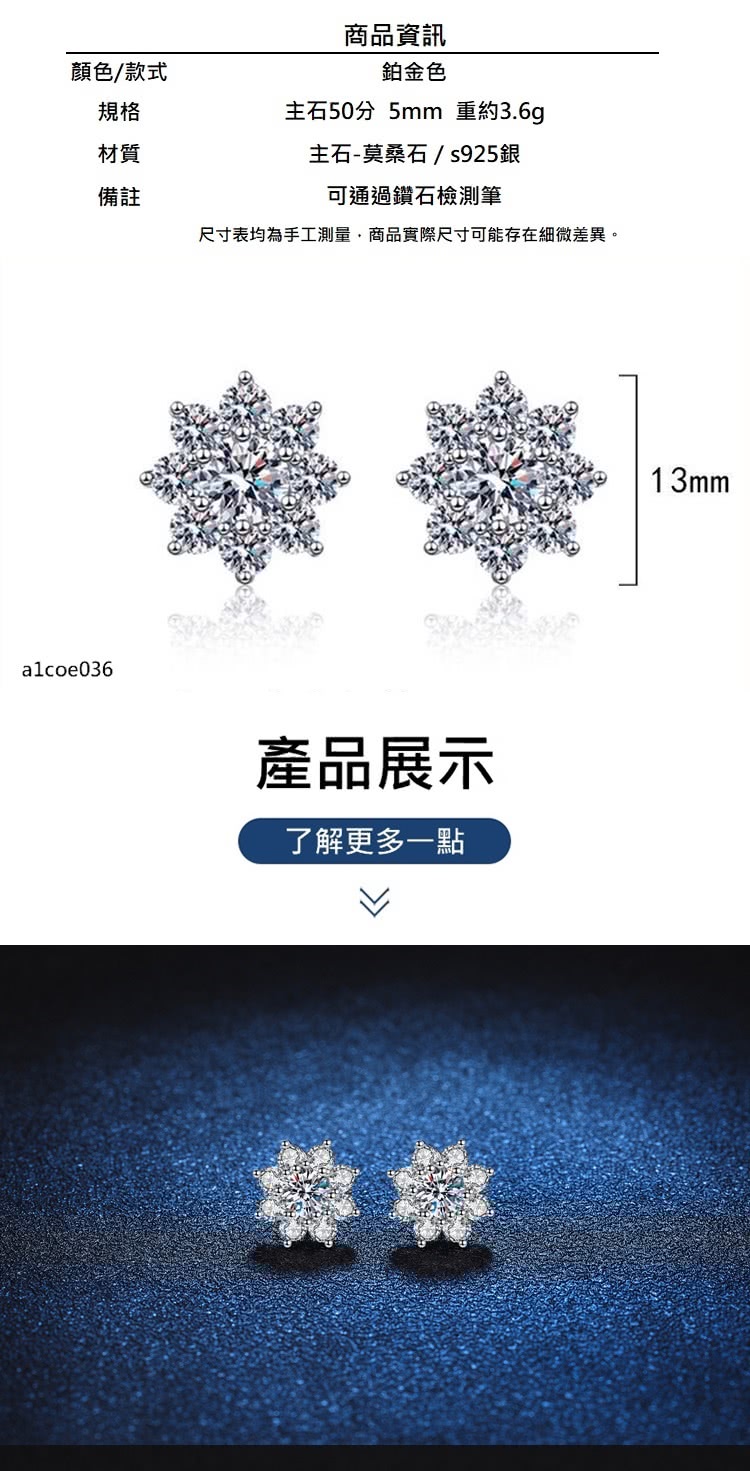 【巴黎精品】現貨+預購 莫桑鑽石耳環925純銀耳環耳針銀飾(0.5克拉女飾品生日情人節禮物a1co21)