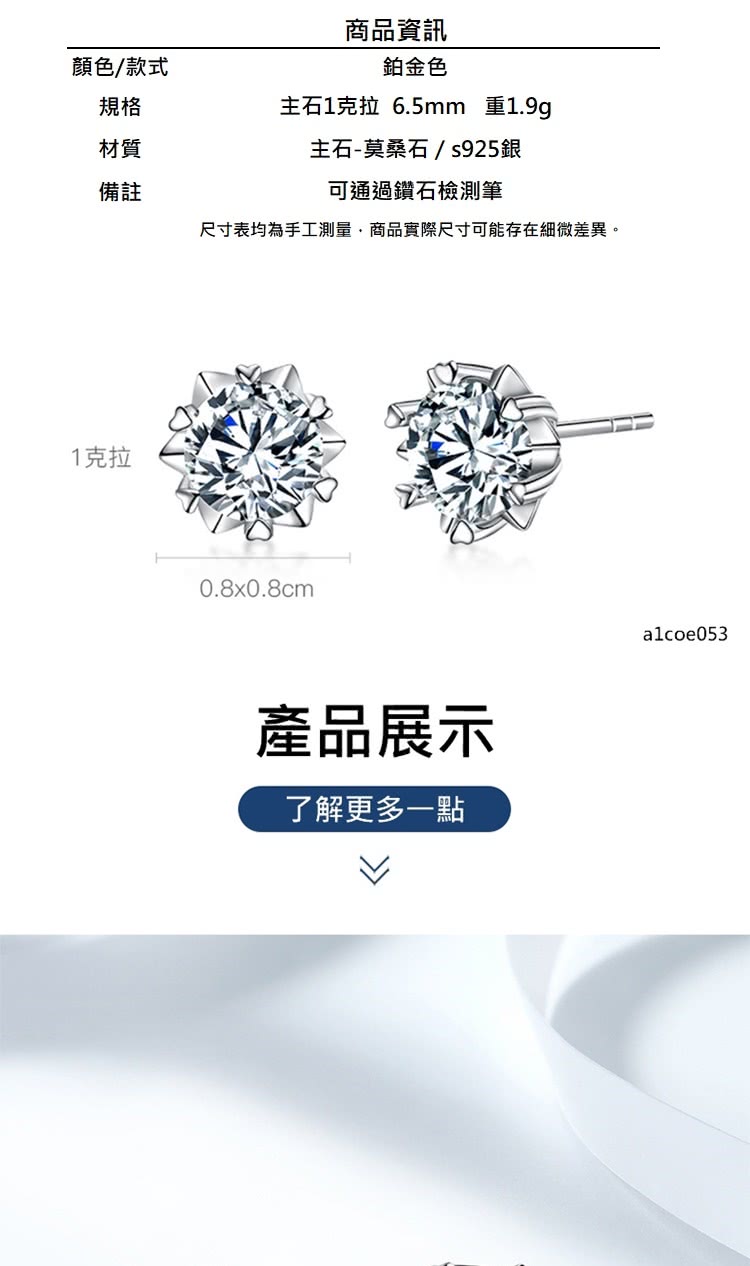 【巴黎精品】現貨+預購 莫桑鑽石耳環925純銀耳環耳針銀飾(1克拉女飾品生日情人節禮物a1co31)