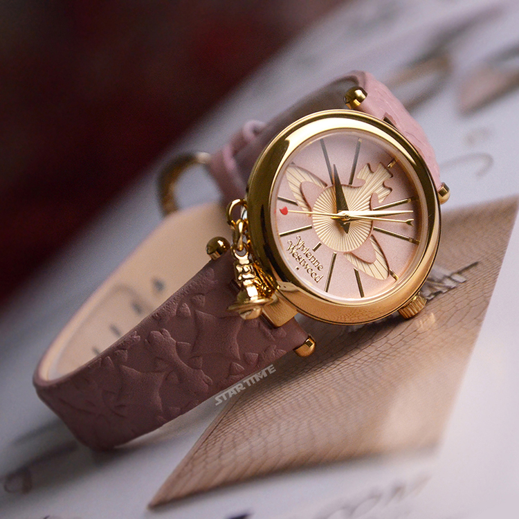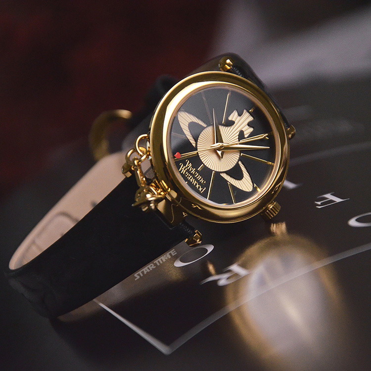 【Vivienne Westwood】金框 皮革錶帶 小裝飾設計 小錶盤 女錶 手錶 32mm 雙11(共3款)