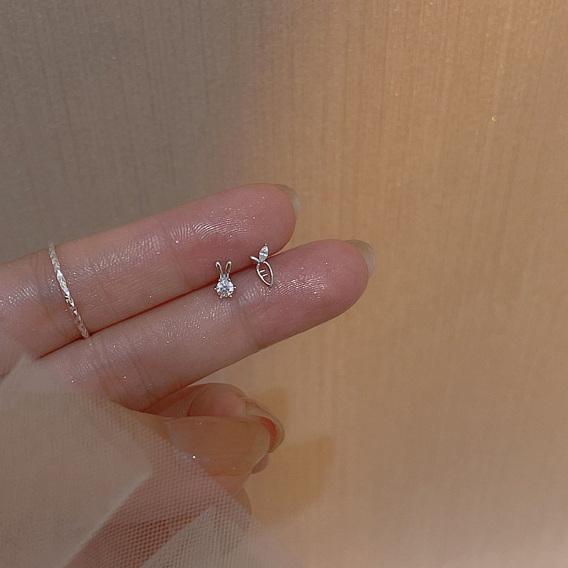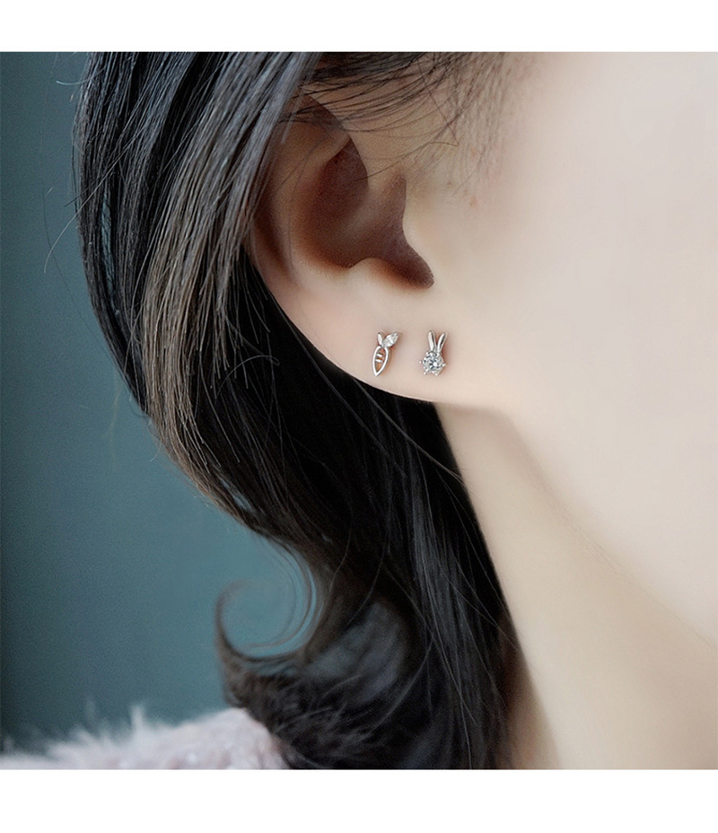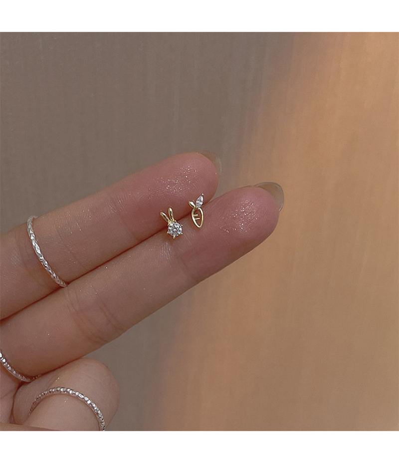 【Umi】可愛小兔子與蘿蔔不對稱造型耳環(日韓時尚潮流女飾品 銀色耳飾 耳針 耳墜 耳釘 生日 情人節 禮物)