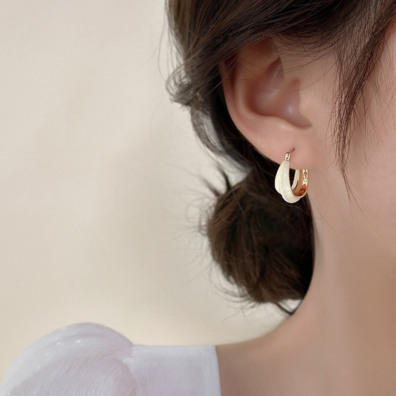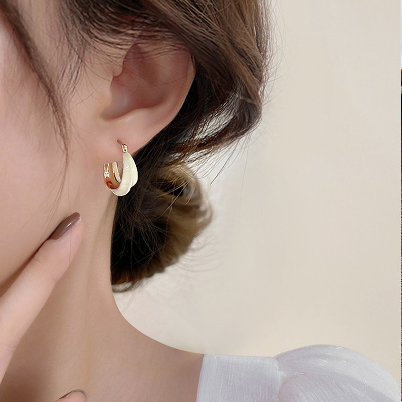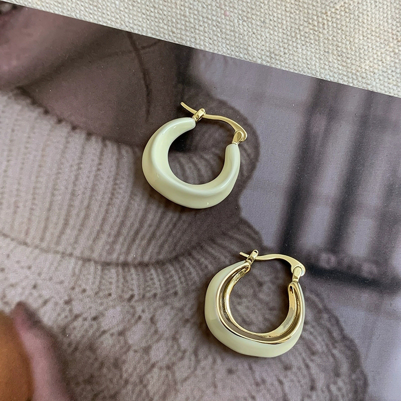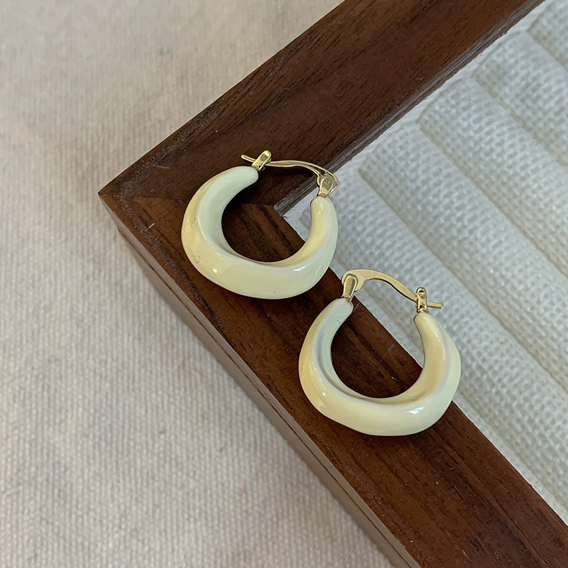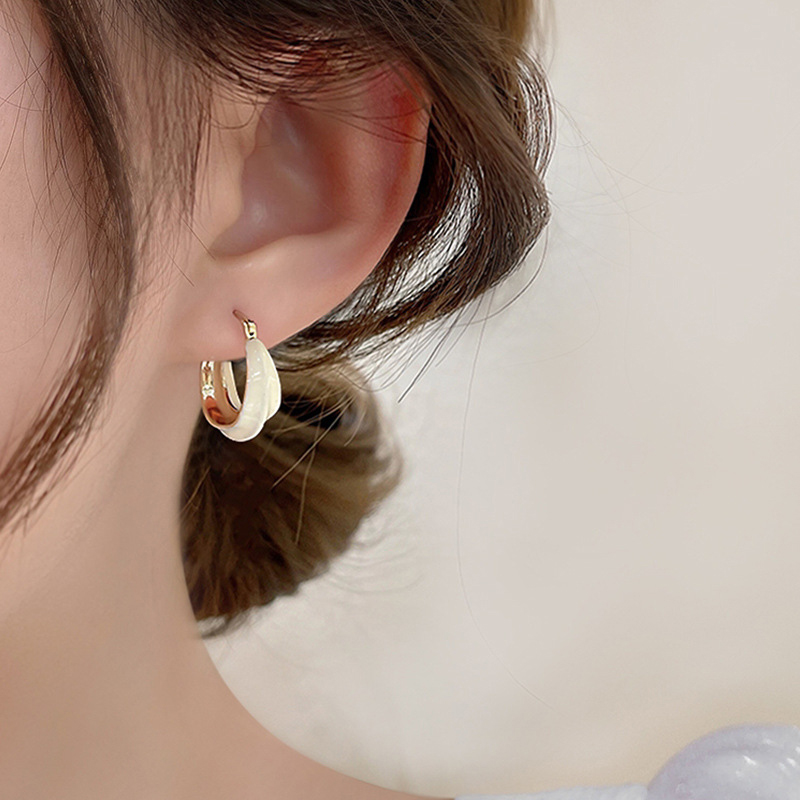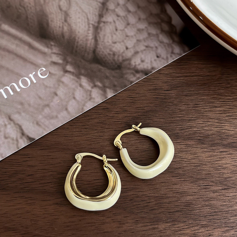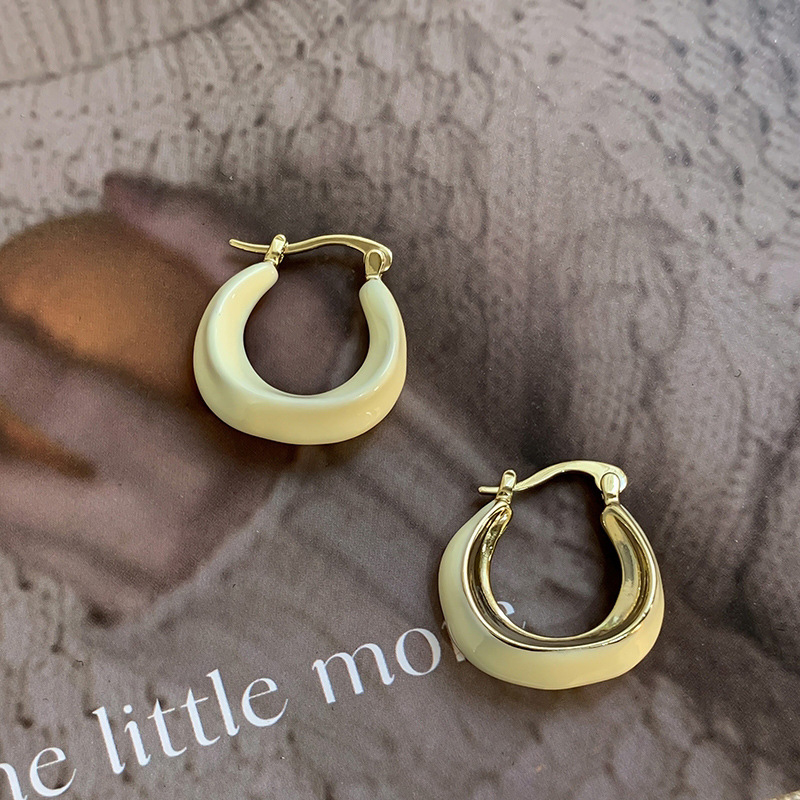【Umi】925純銀針淡金色復古輕奢象牙米白色圓形環繞環形耳環64977(日韓時尚潮流耳飾耳針耳墜耳釘)