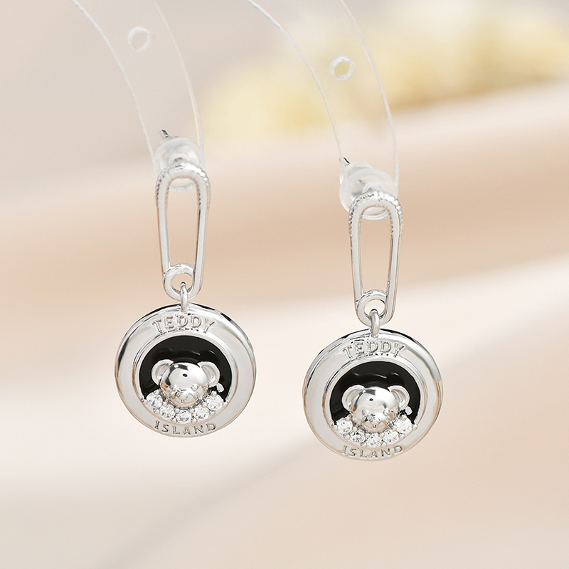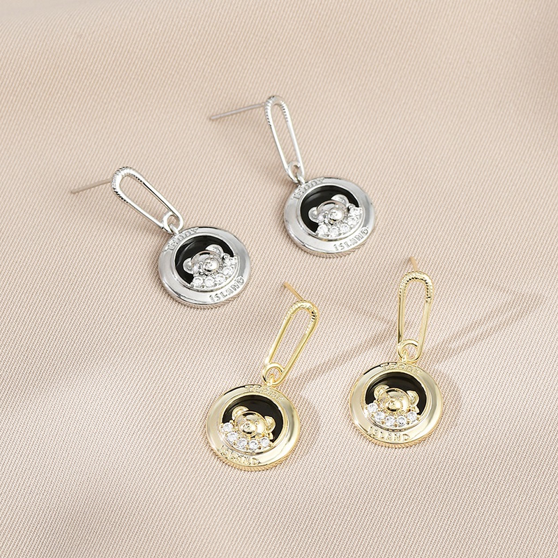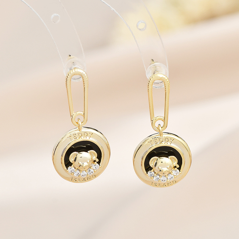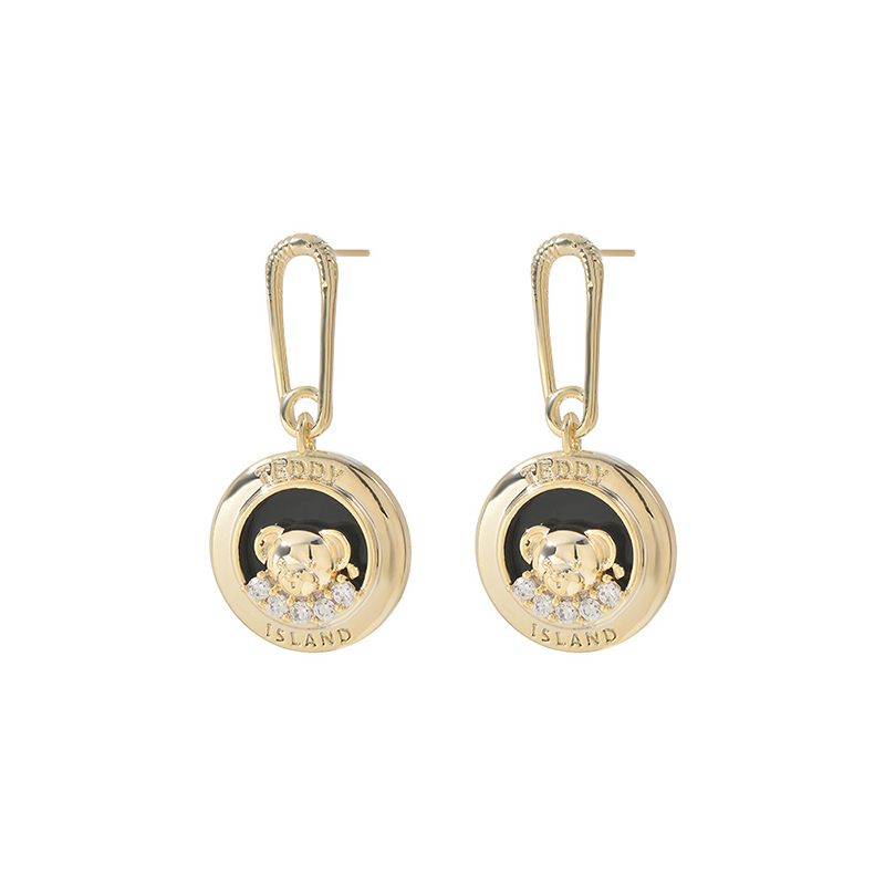 【Umi】925純銀針淡金色微鑲鋯石復古輕奢獨創設計小熊耳環(日韓時尚潮流耳飾耳針耳墜耳釘)