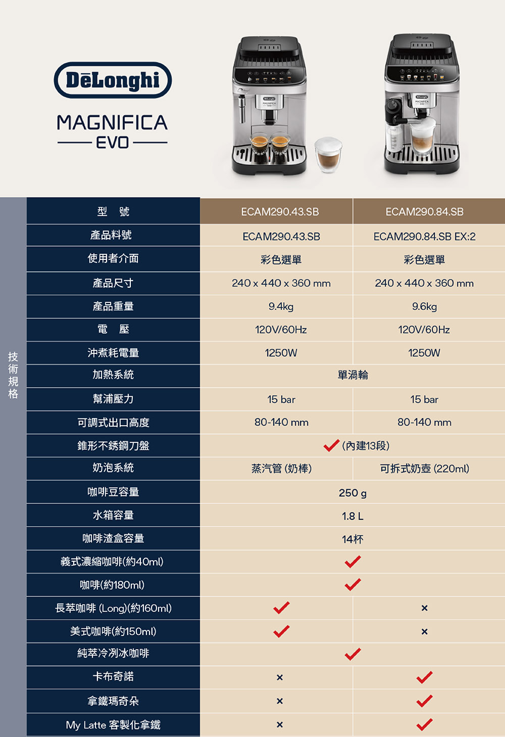 【Delonghi】官方直營 ECAM 290.84.SB 全自動義式咖啡機(EVO 系列)