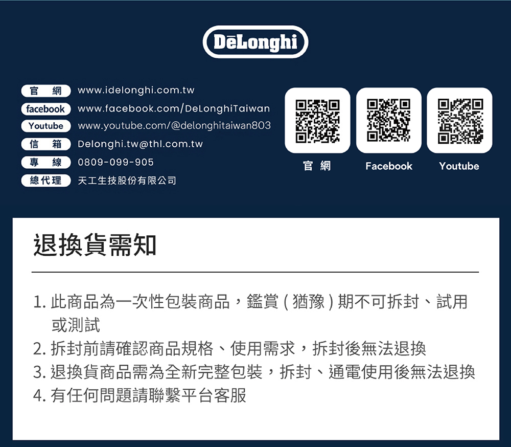 ,若商品拆封、過水、使用,會影響退貨權益,敬請見諒。