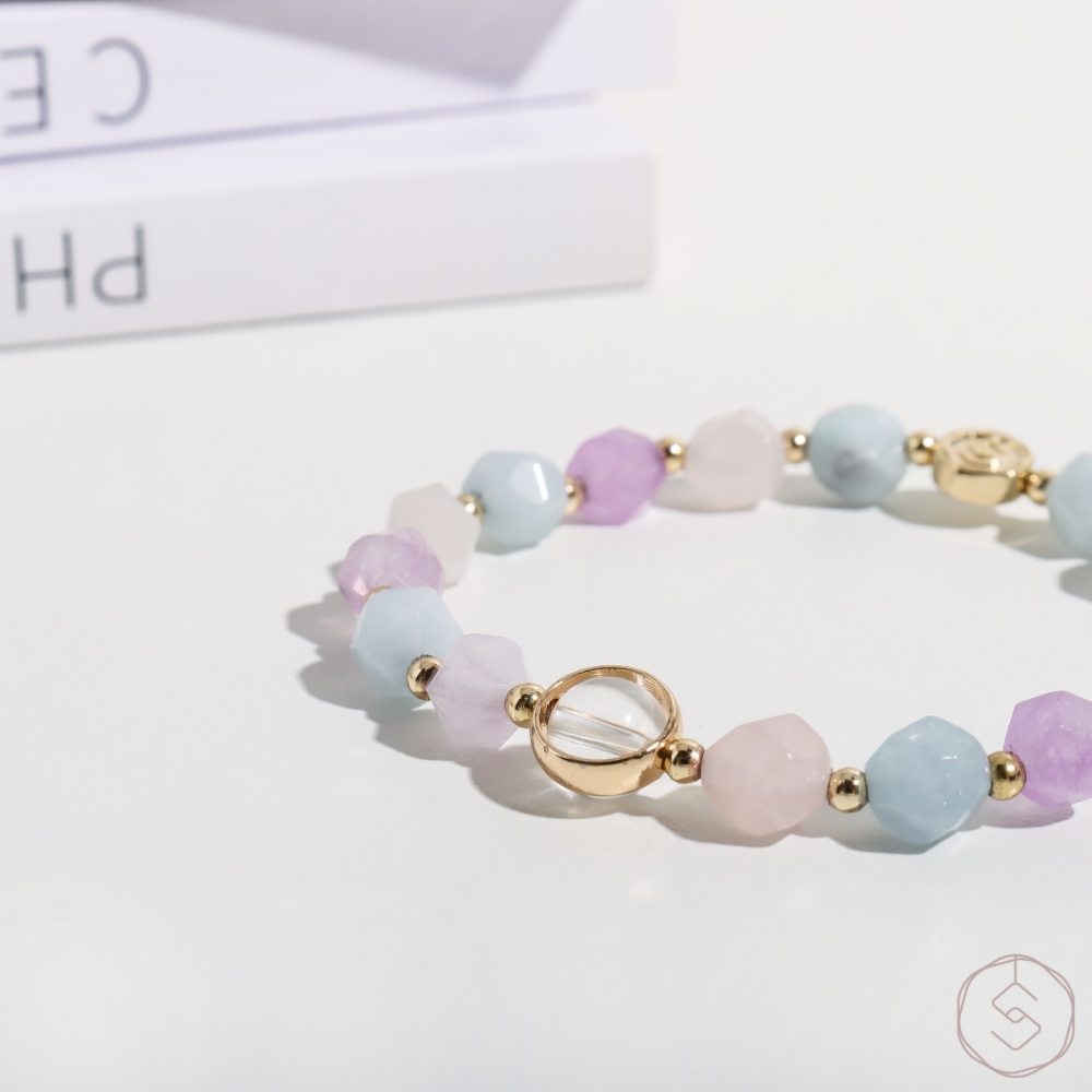 【SPANCONNY 飾品控】童趣 l 海藍寶 薰衣草紫水晶 粉水晶 白水晶 l 兒童水晶手鍊(自信+智慧)