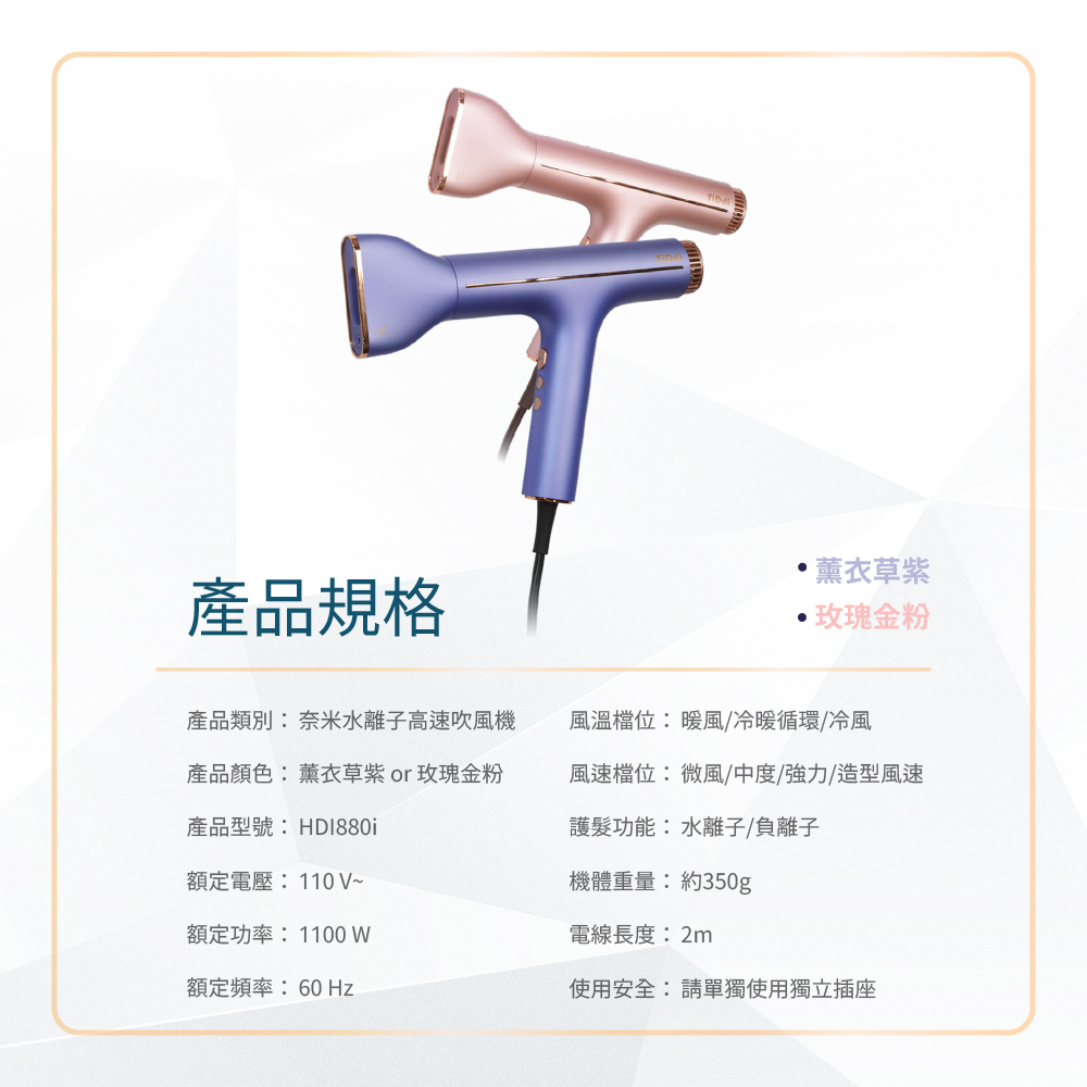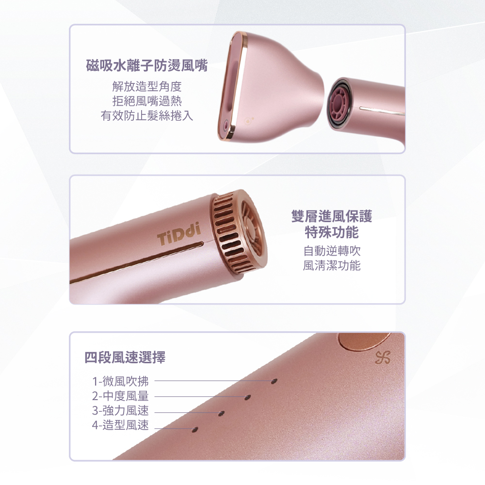 我們都知道早上起床面對亂翹翹的頭髮有多困擾。這款革命性的產品能讓你在短短幾分鐘內擁有沙龍般美麗的髮型,因為擁有71.3m/s超高風速,搭配水離子風嘴,能夠在低溫狀態下,快速定型您的秀髮。
