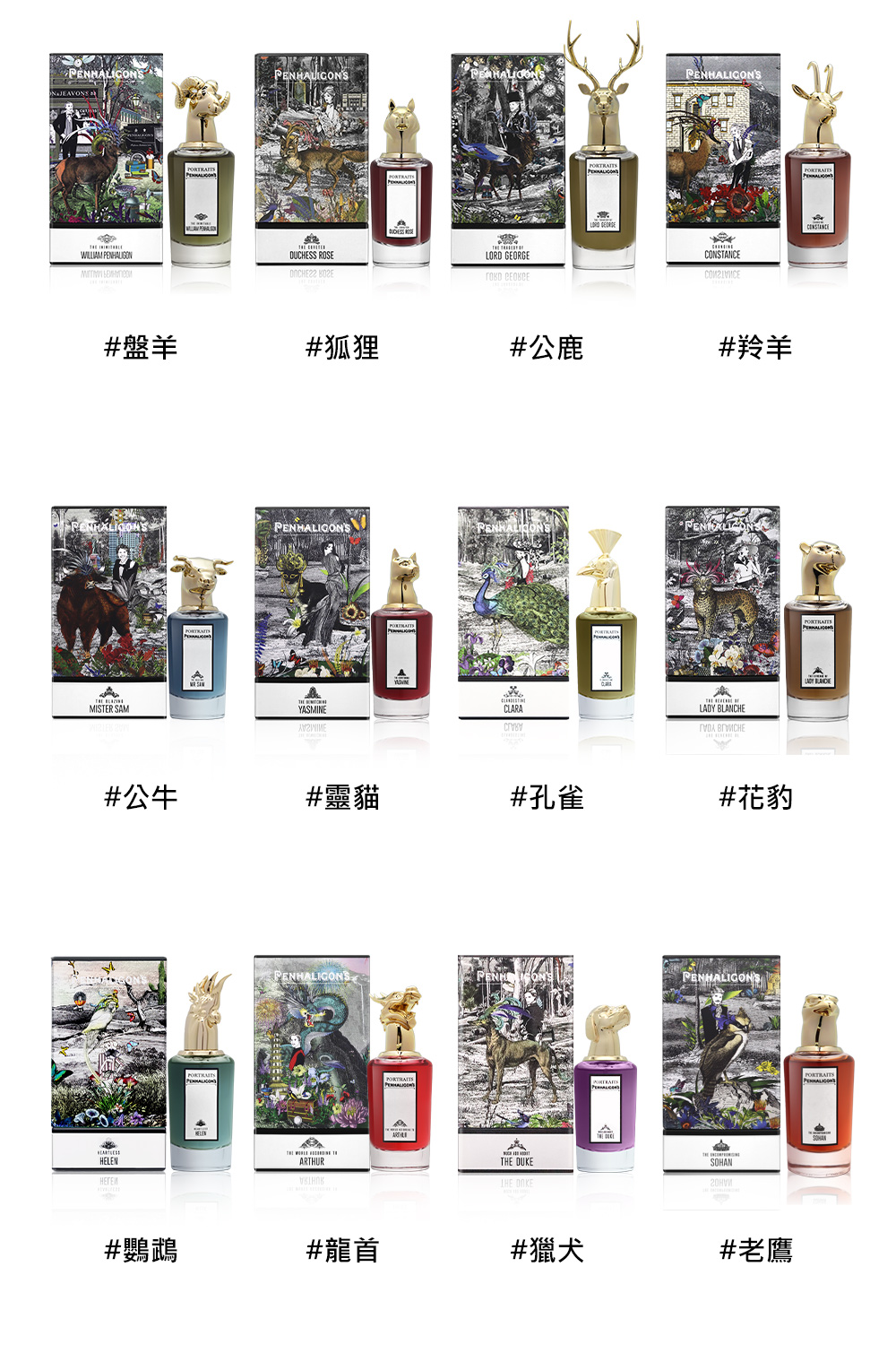 公鹿/狐狸/盤羊/羚羊/公牛/花豹/靈貓 / 鸚鵡 / 龍首