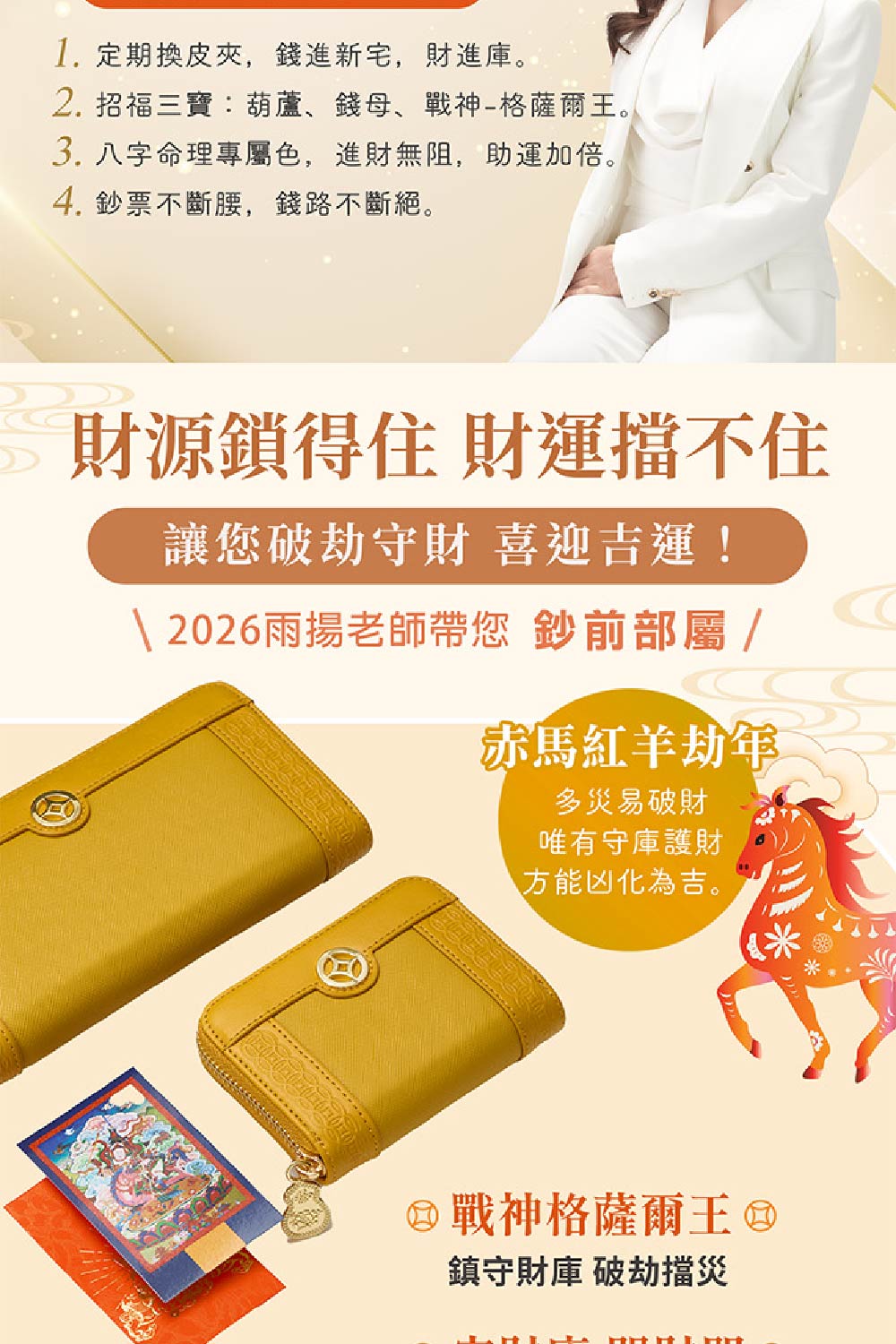 雨揚【自選色】2026雨揚珍品馭字成財開運皮夾組,注意事項: