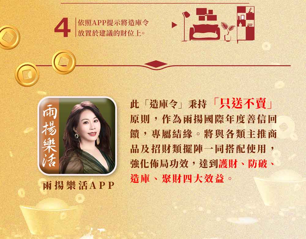 1.若您是訂購"自選色"財庫組,請您於收到後立即啟用搶財氣在先!!