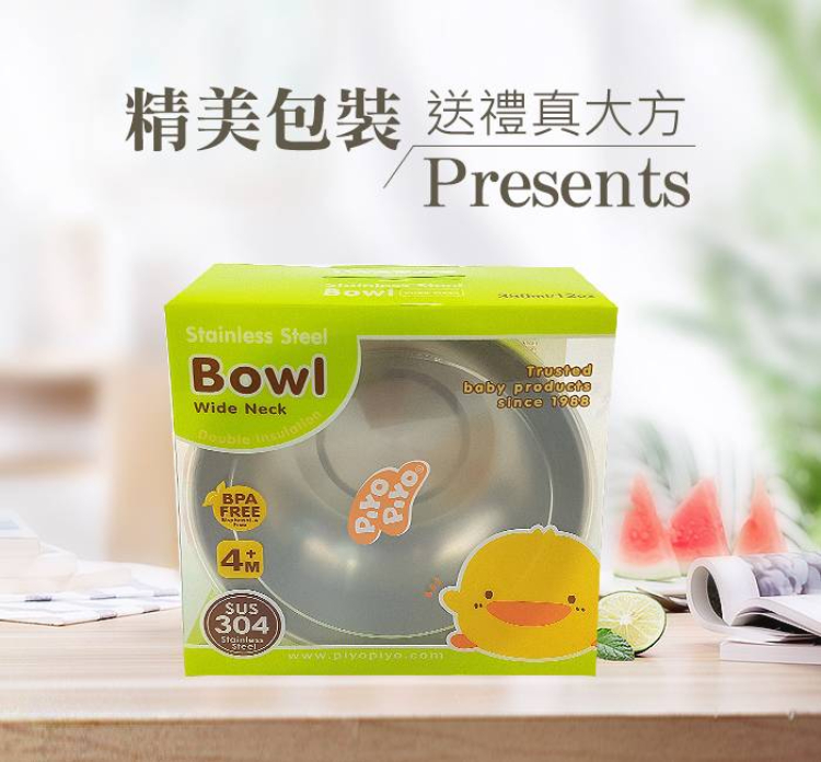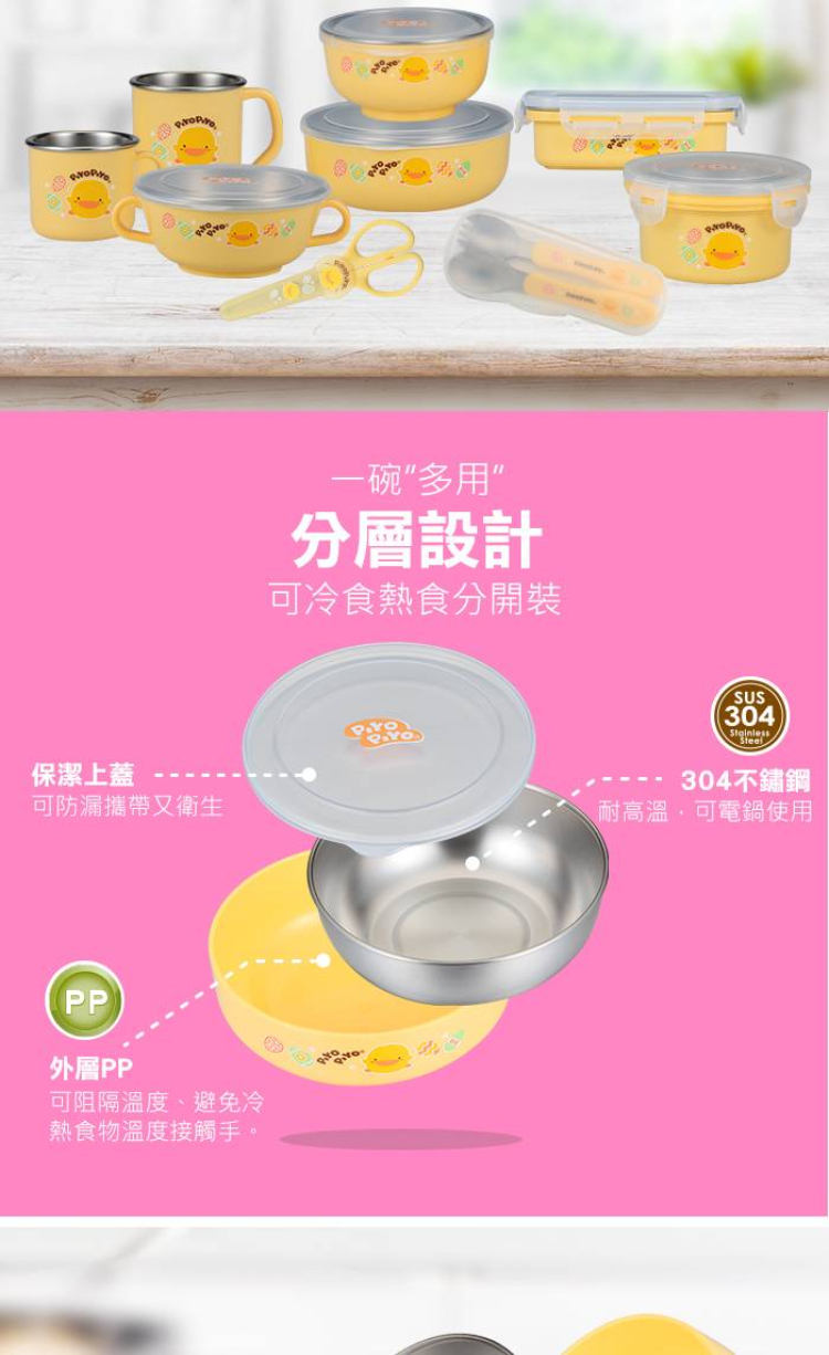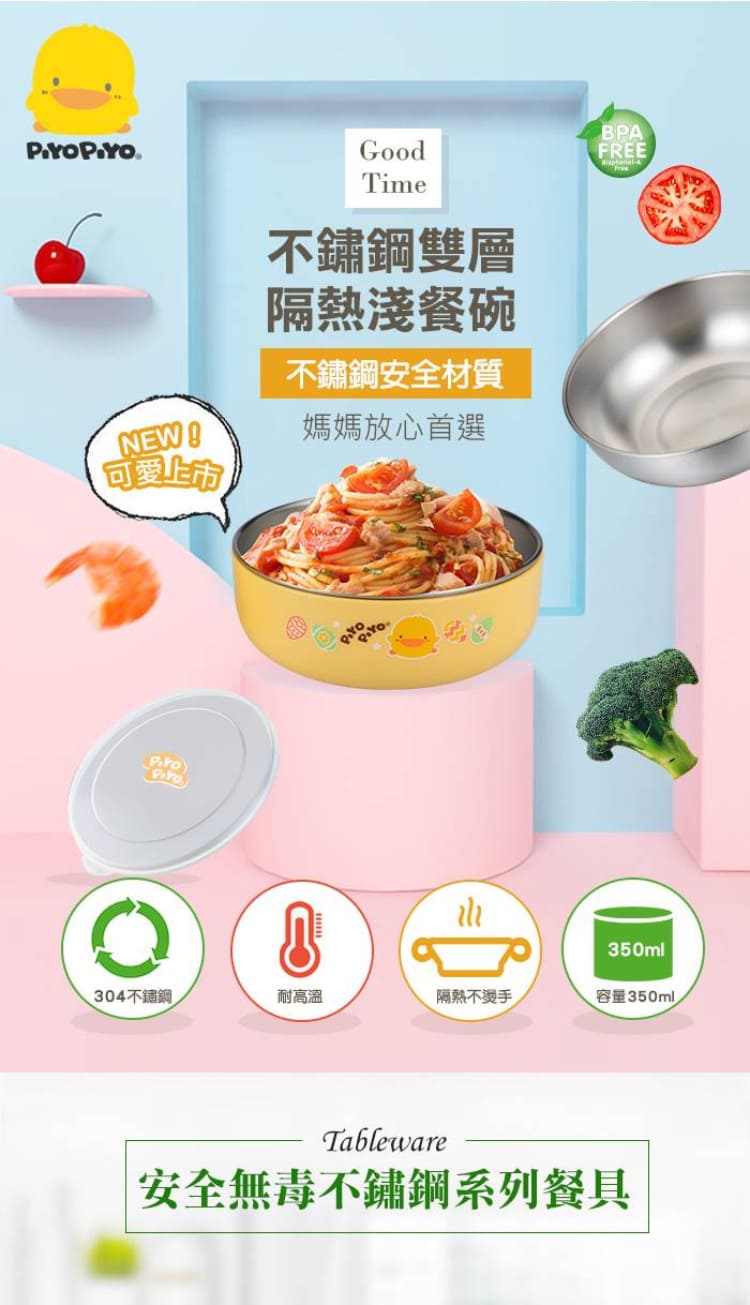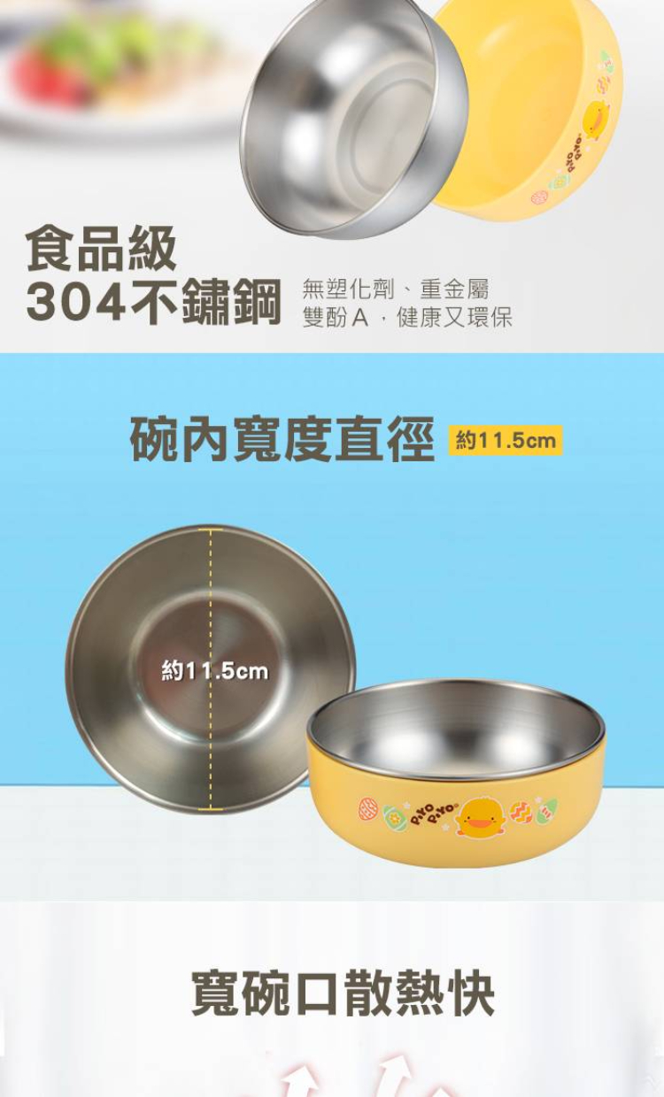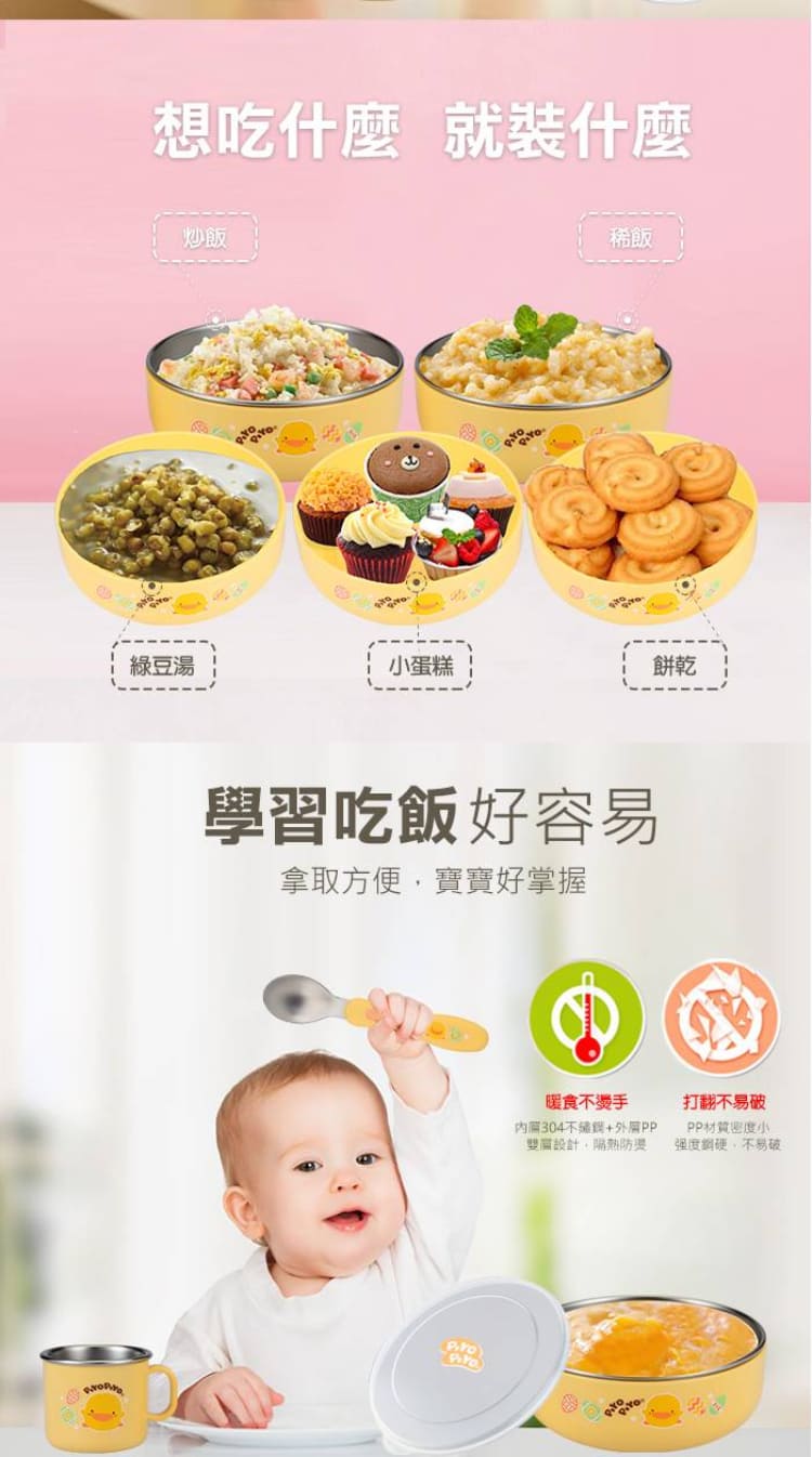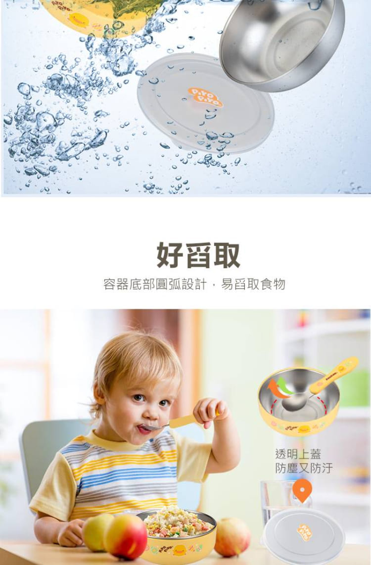 【Piyo Piyo 黃色小鴨】不鏽鋼雙層隔熱淺餐碗(350ml 隔熱 可電鍋 304不鏽鋼 防塵蓋 寶寶學習餐具)