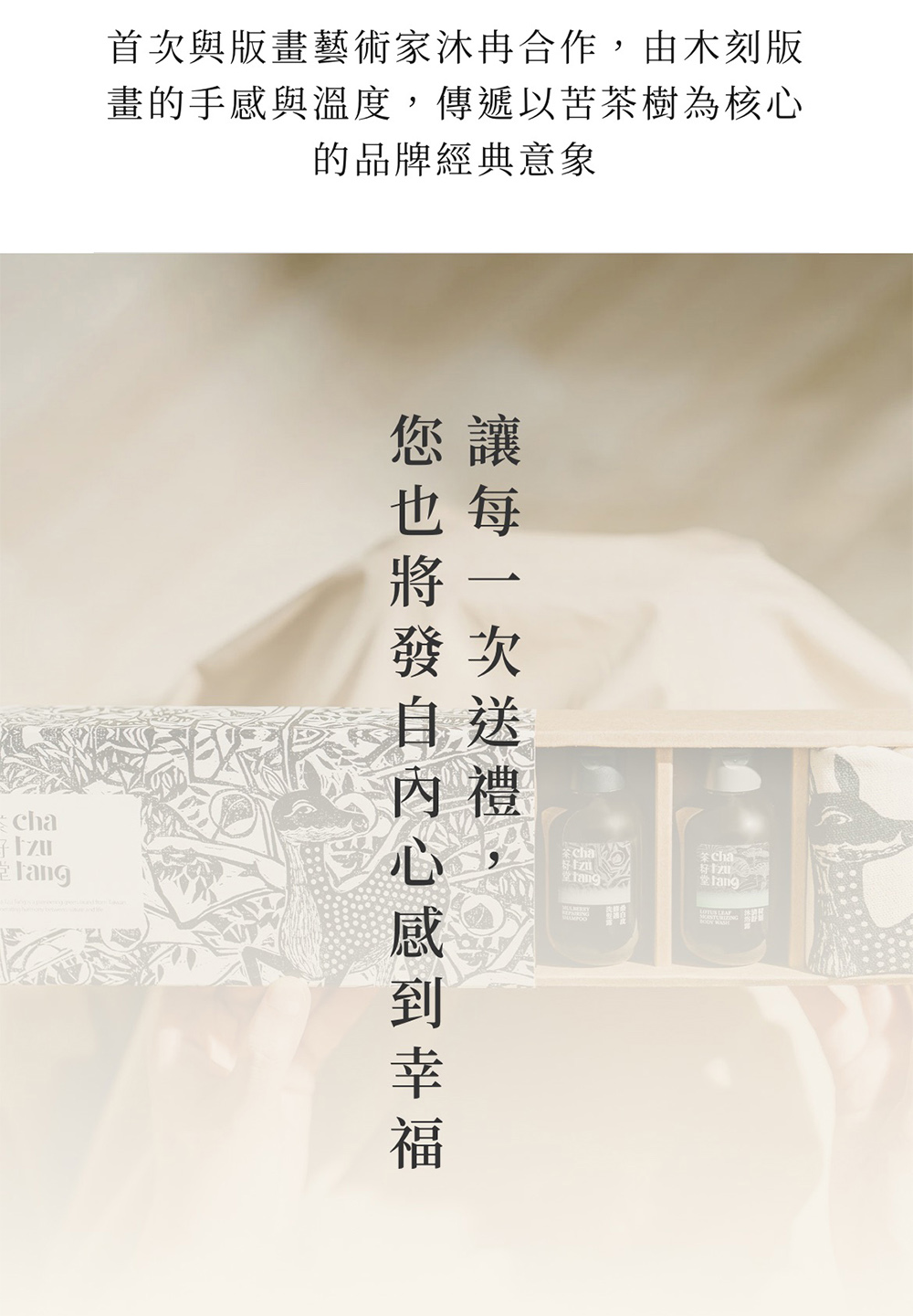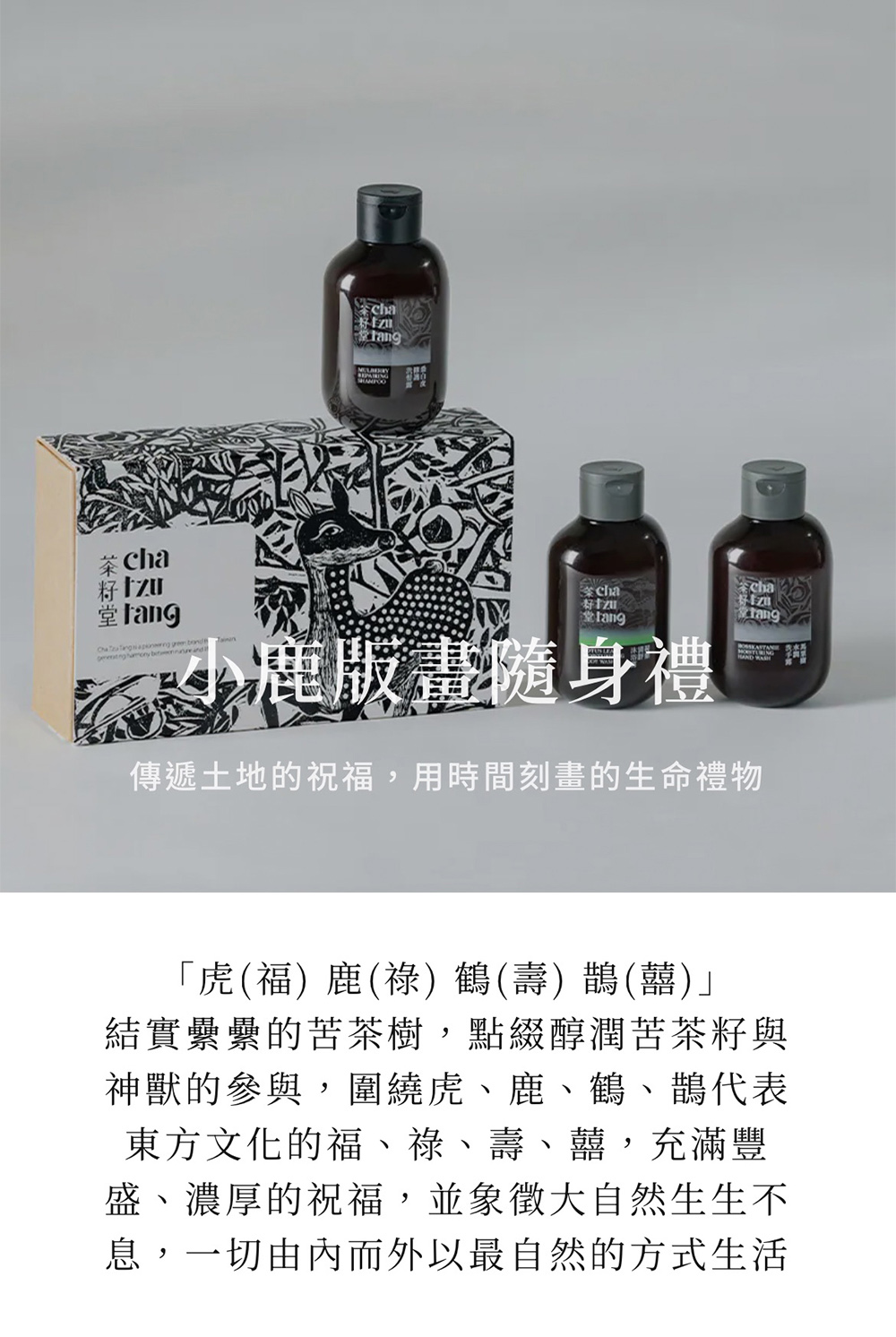 【茶籽堂】小鹿版畫洗沐旅行組|50mLx3 附小鹿袋(洗髮露/沐浴露/洗手露/送禮推薦)