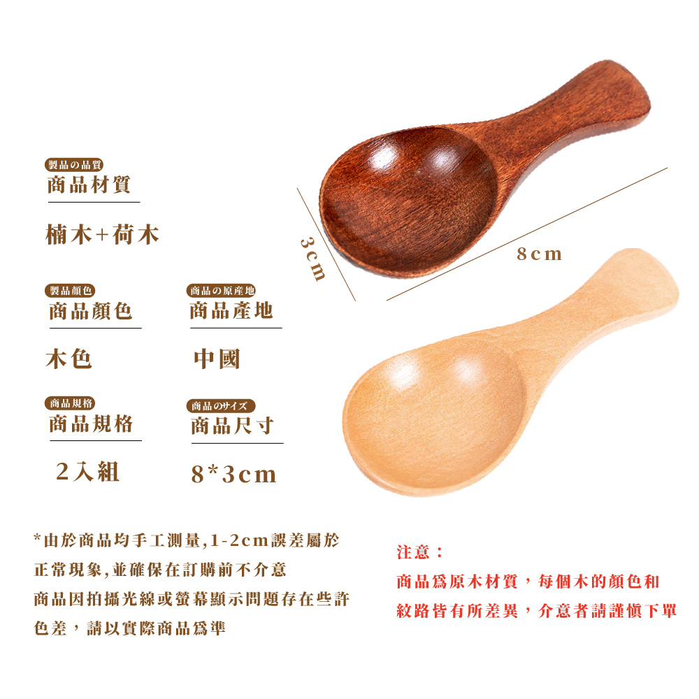 【木質餐具】日式荷木楠木迷你木勺2入(冰淇淋勺 茶葉勺 兒童用勺 木湯匙 木匙 湯勺 調味勺 茶勺 茶鏟)