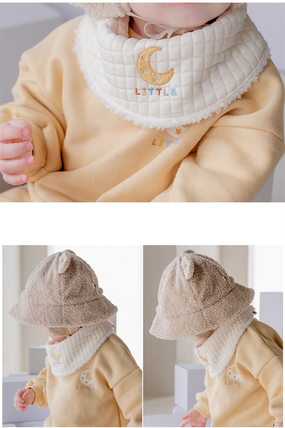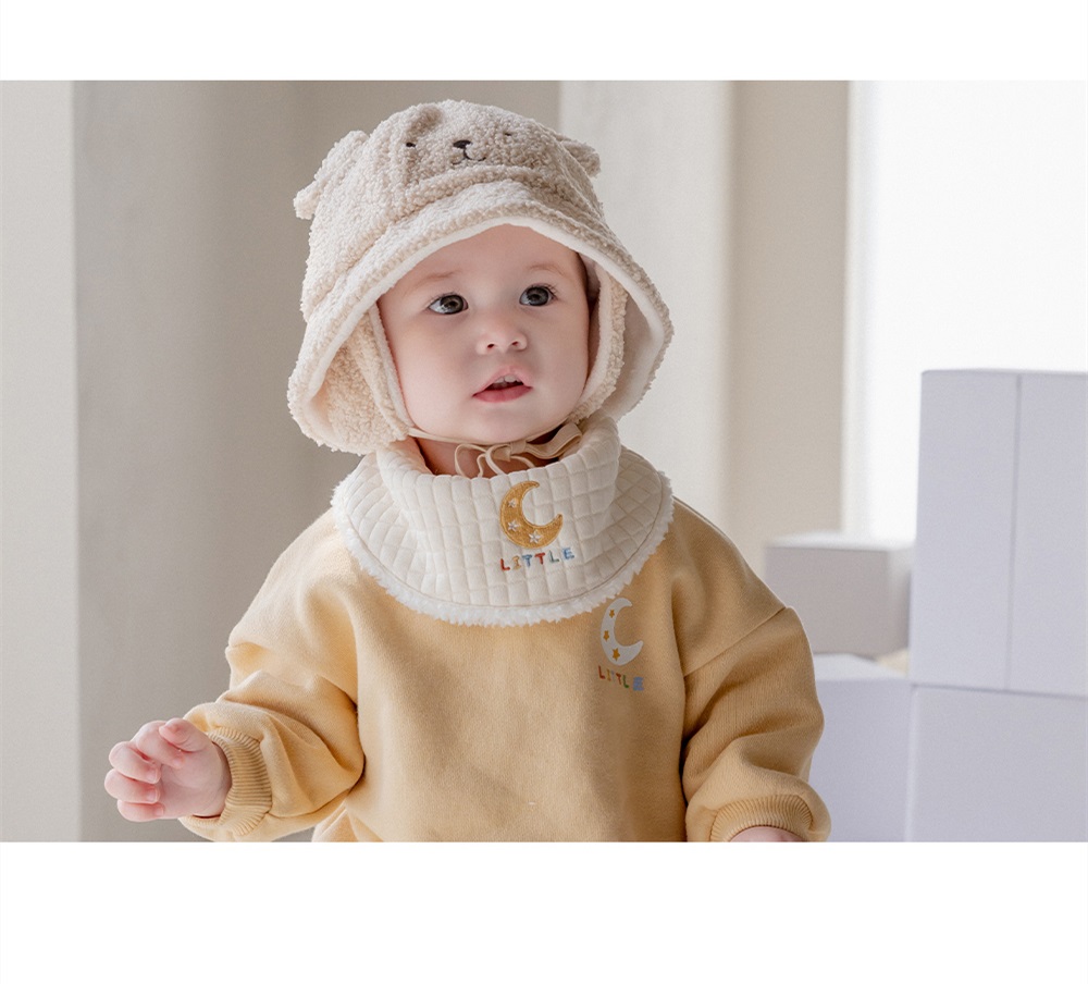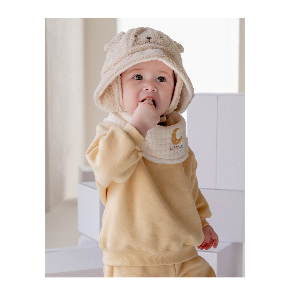 【Happy Prince】韓國製 Enzo黃月亮雪絨內裡嬰兒童圍兜(保暖寶寶圍脖圍兜口水巾)