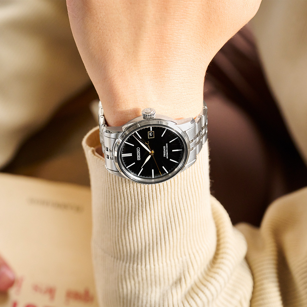 全新設計中,黑色漆藝錶盤佈局清晰,錶殼風格經典,多排錶鍊則舒適貼合手腕