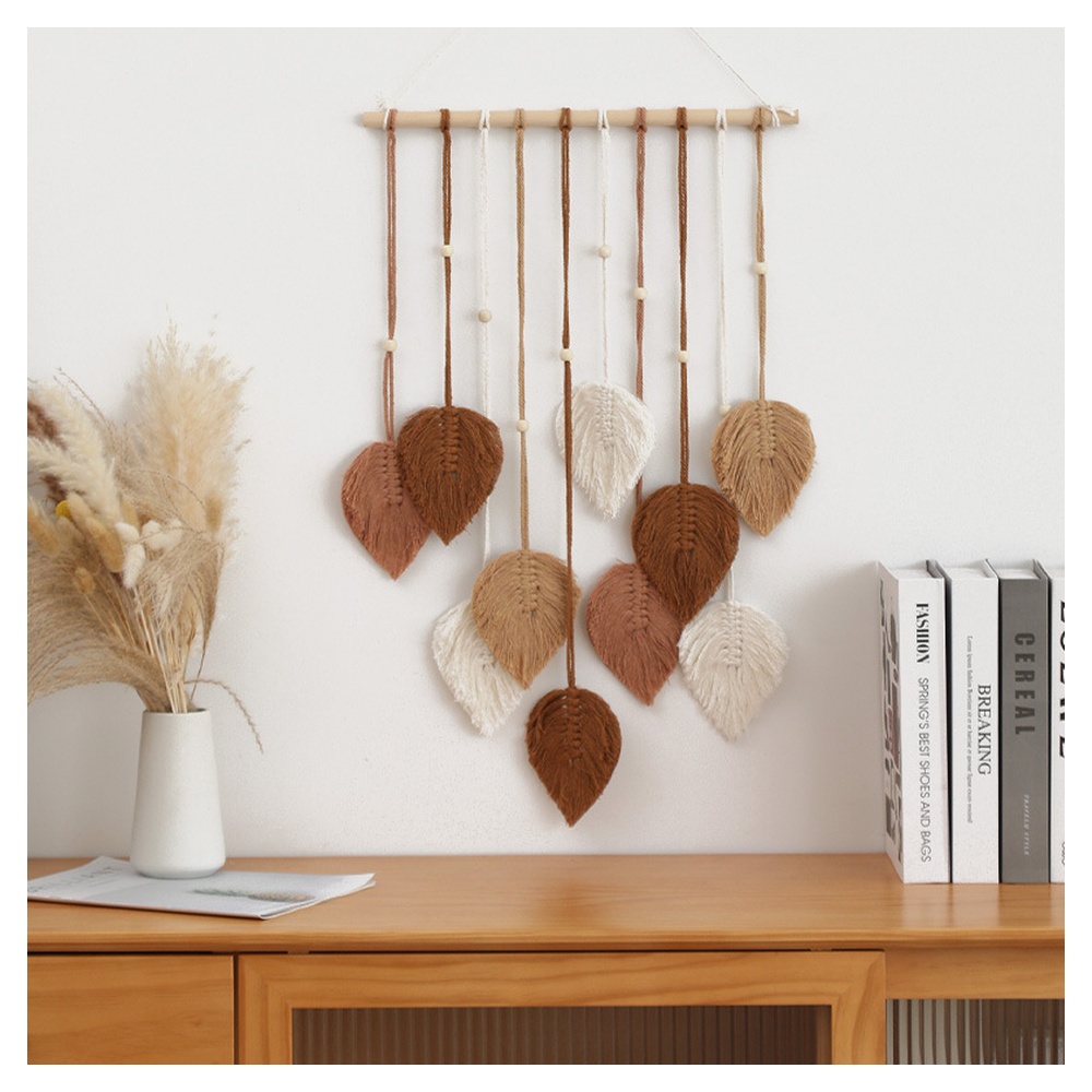 【栗子洋行】macrame手工壁幔壁掛毯裝飾慢編織壁掛掛飾壁毯樹葉彩虹(喬遷禮物朋友禮物搬家禮物)
