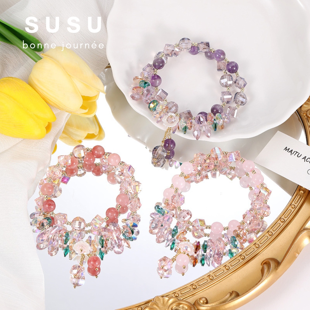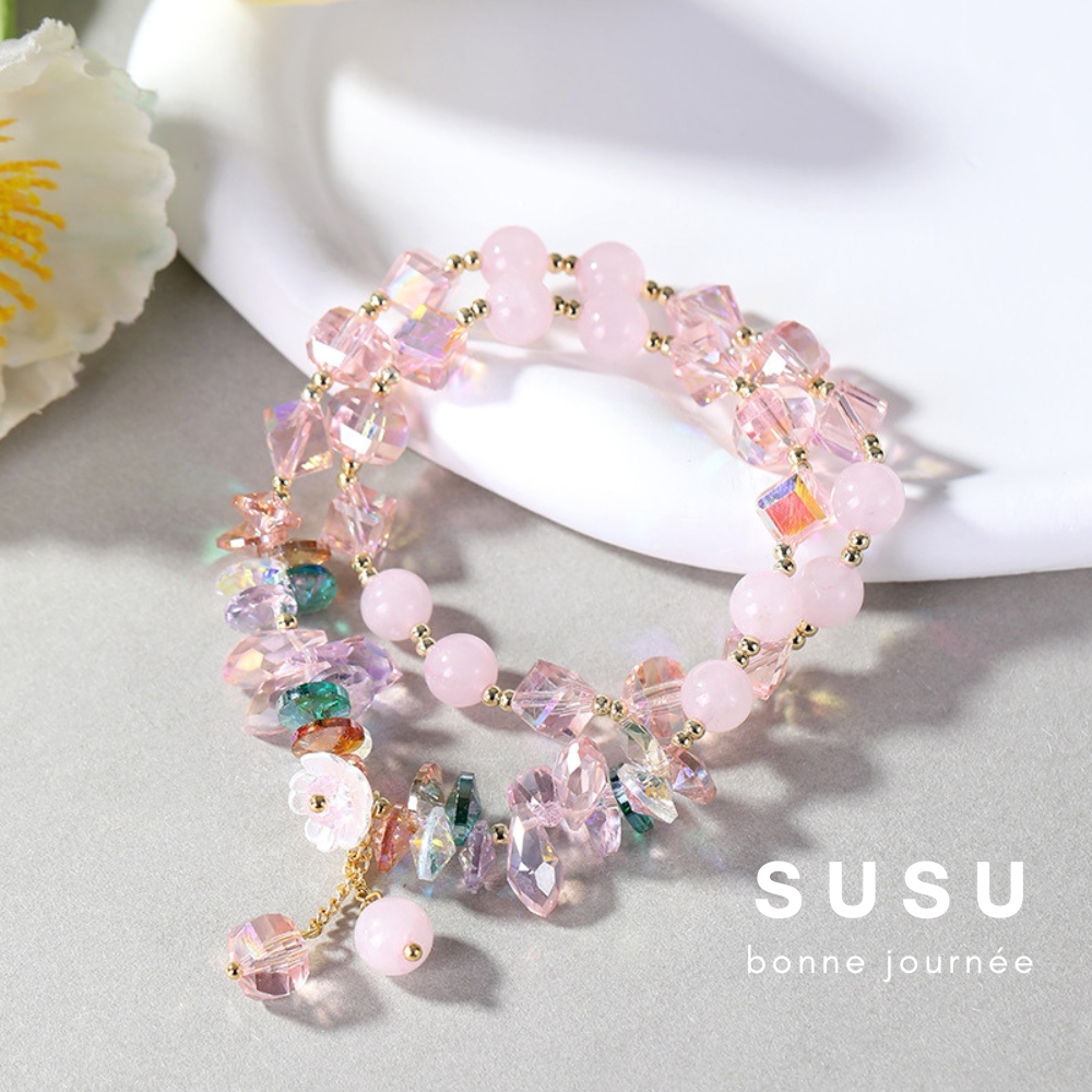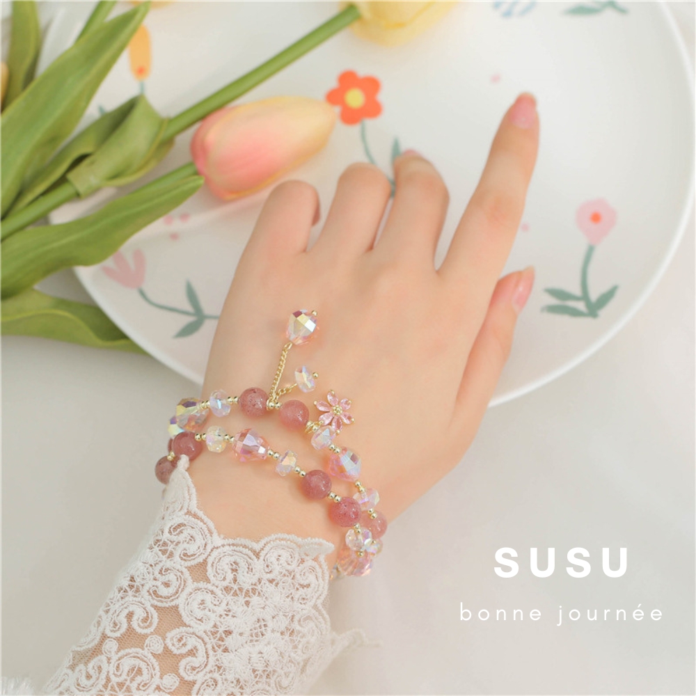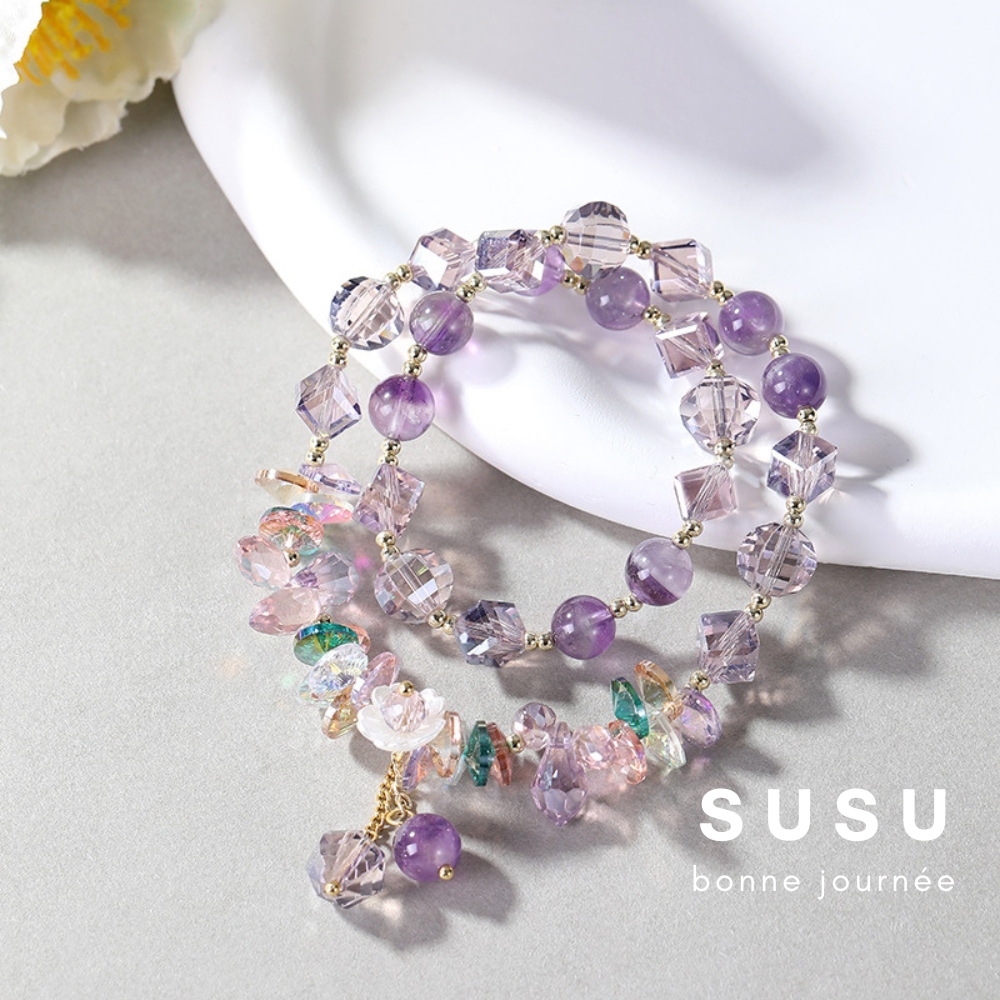 【SU SU】多寶水晶雙圈粉鑽手鍊(草莓晶 紫水晶 粉水晶 事業運 招財 轉運 能量 防小人 水晶手鍊)